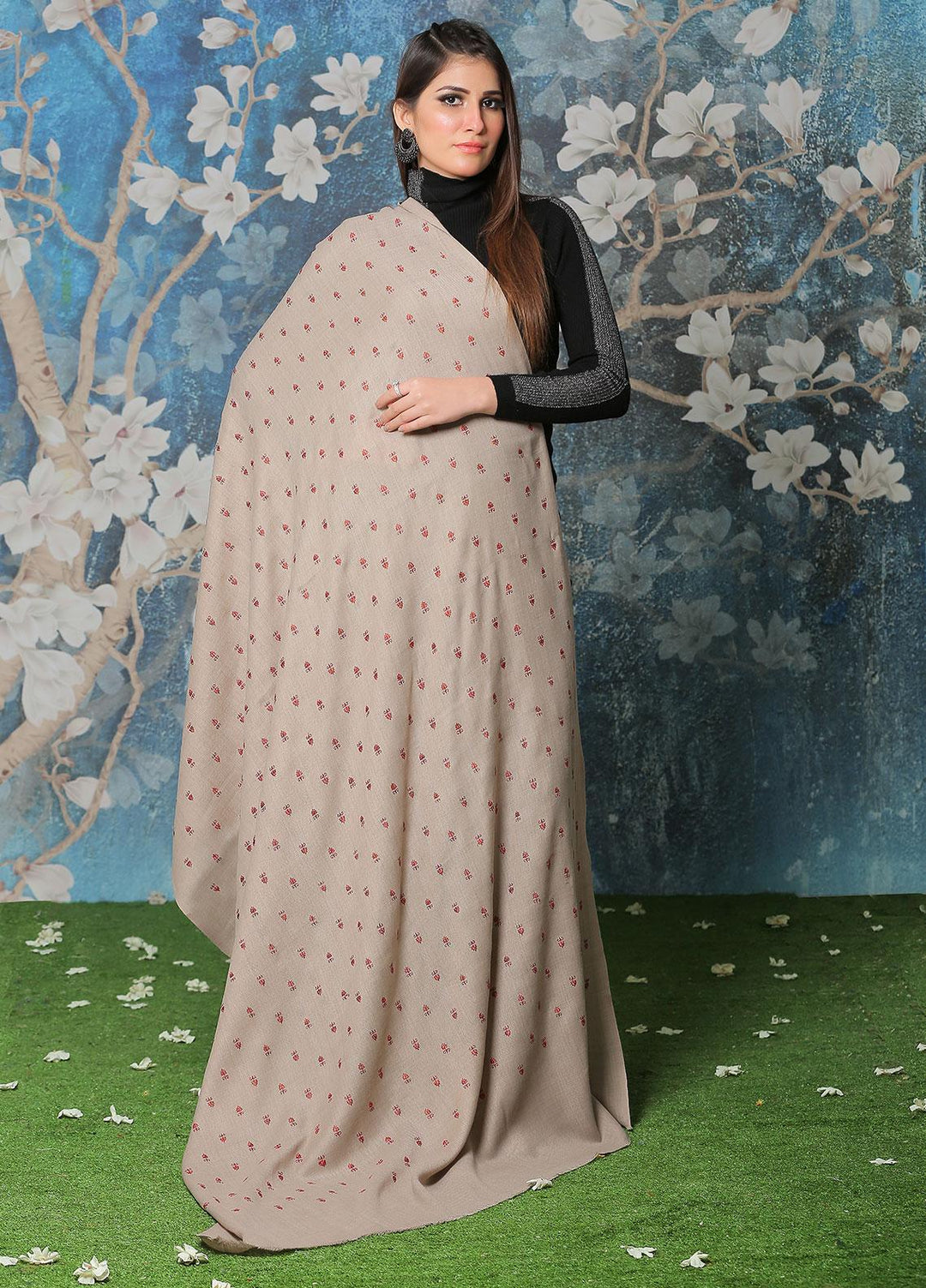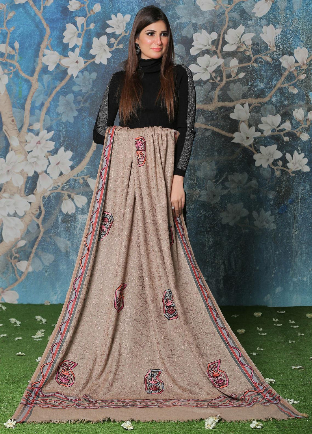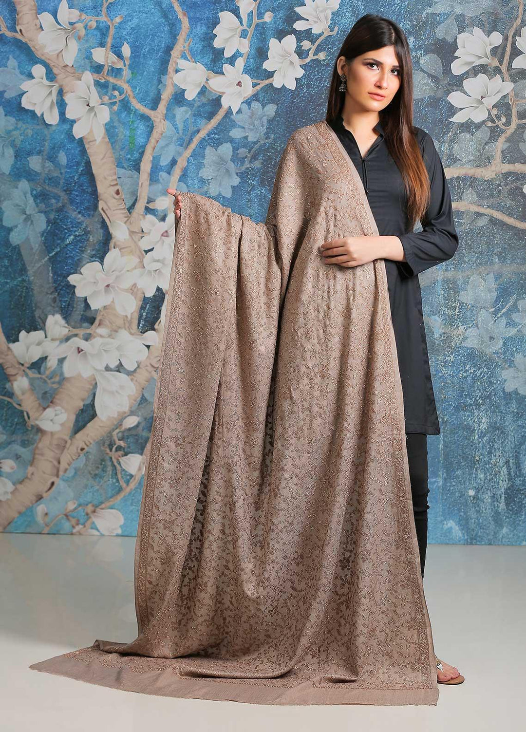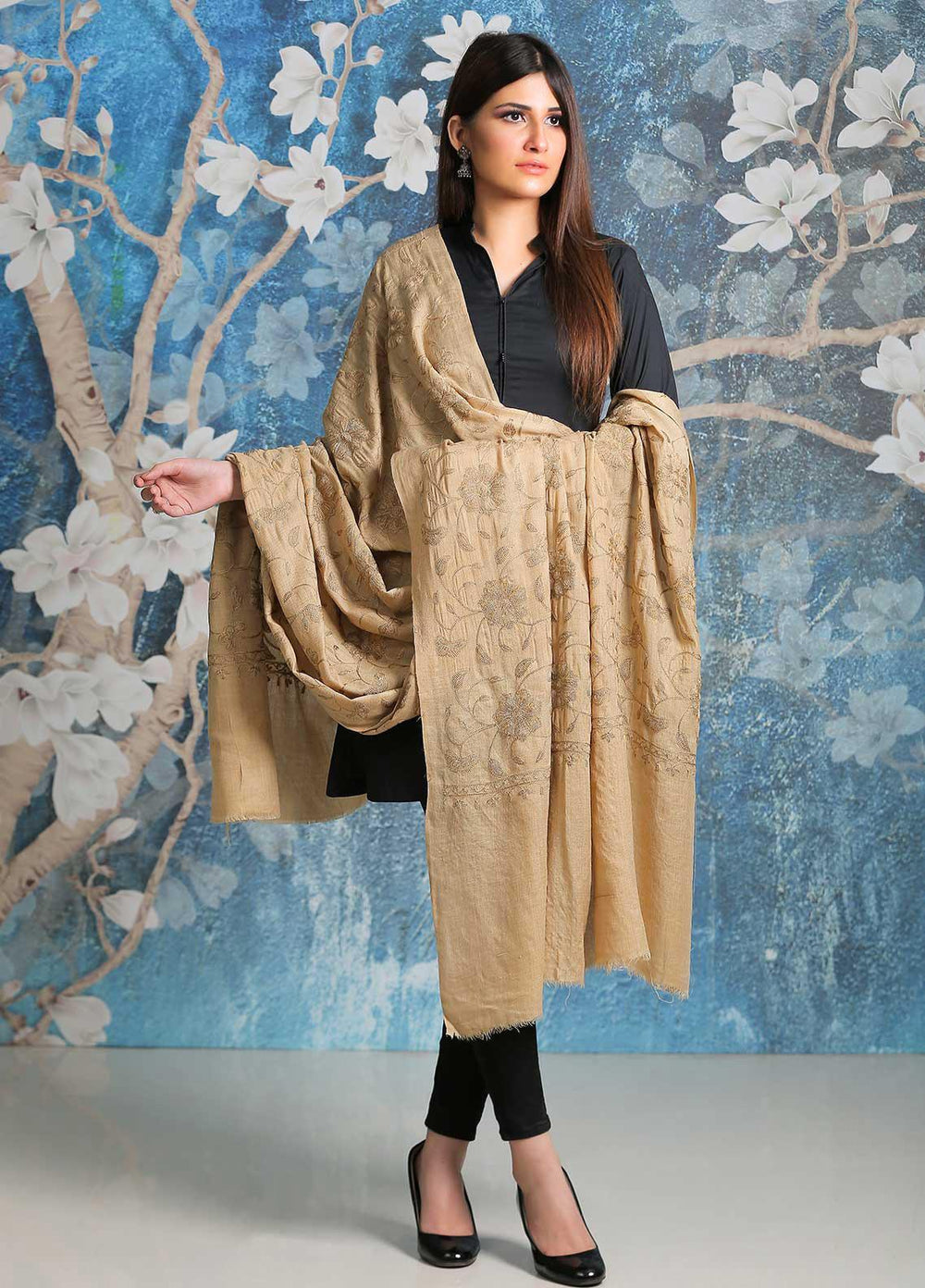 Sanaulla Exclusive Range Embroidered Pashmina Shawl SU21PP AKP-21 Fawn-1 - Pure Pashmina Shawls