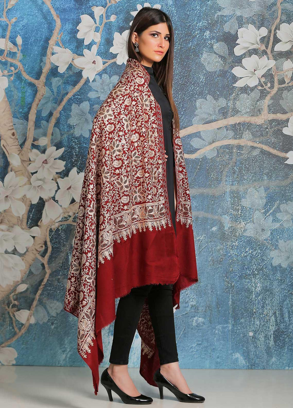 Sanaulla Exclusive Range Embroidered Pashmina Shawl SU21PP AKP-09 Maroon - Pure Pashmina Shawls