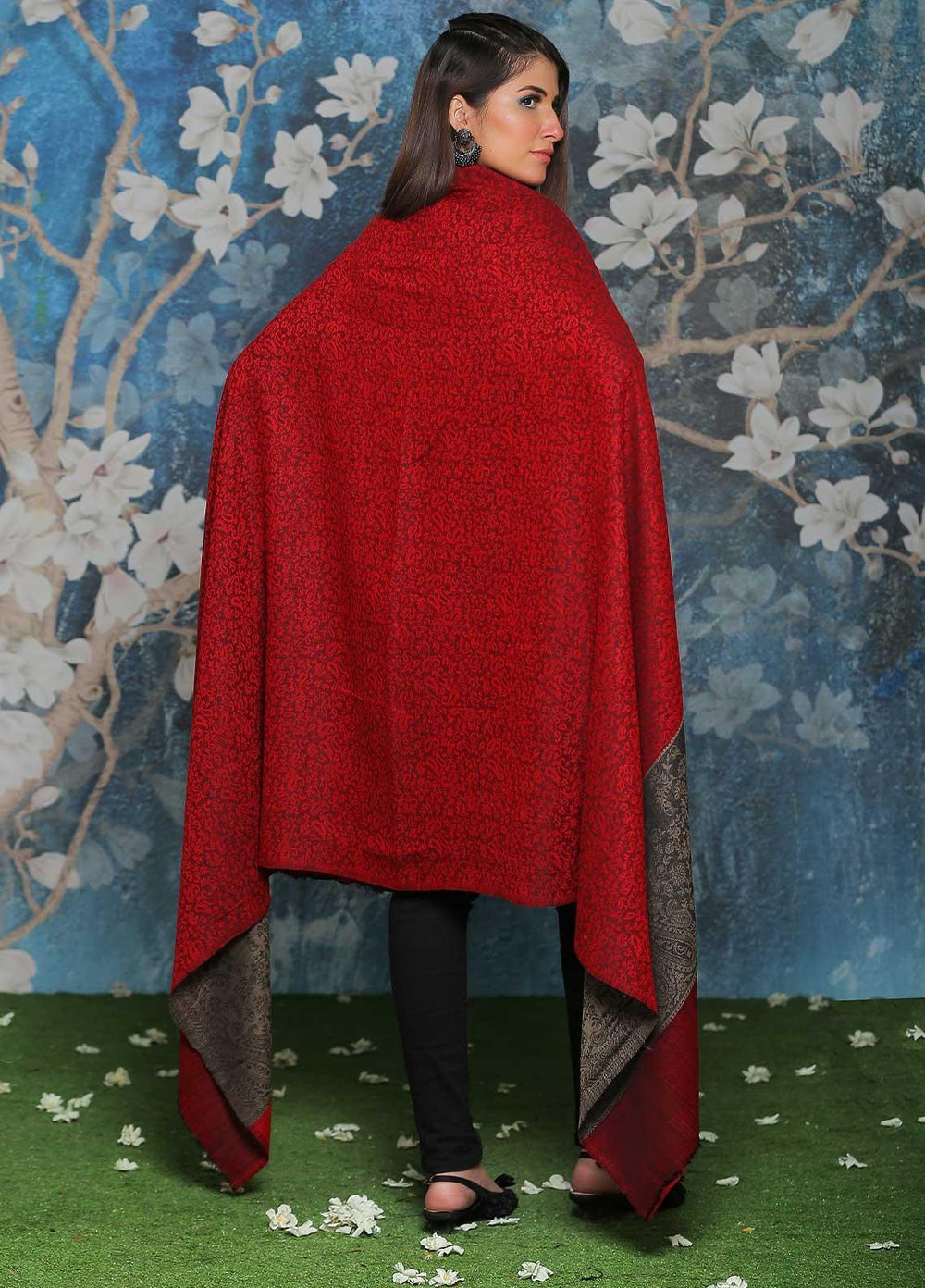 Sanaulla Exclusive Range Embroidered Pashmina Shawl AKP-51 Red-1 - Pashmina Shawls
