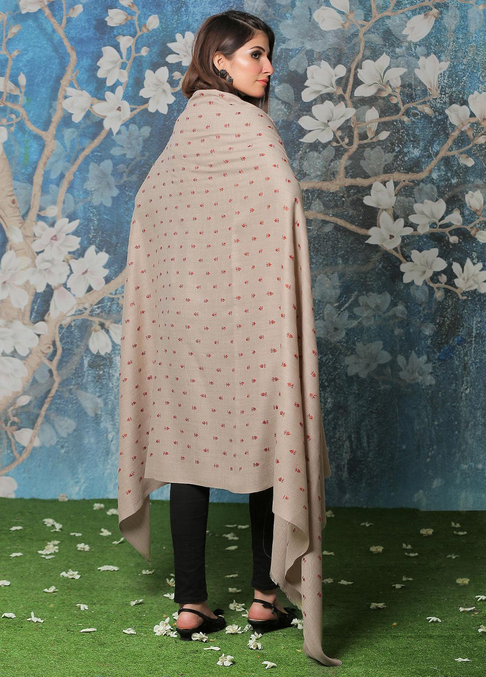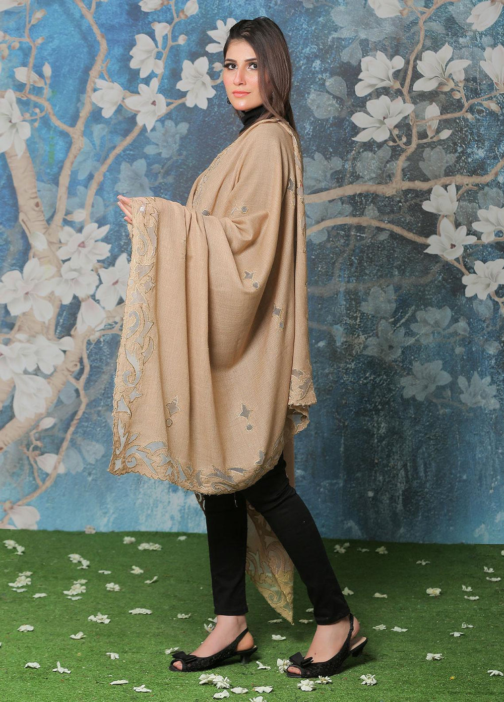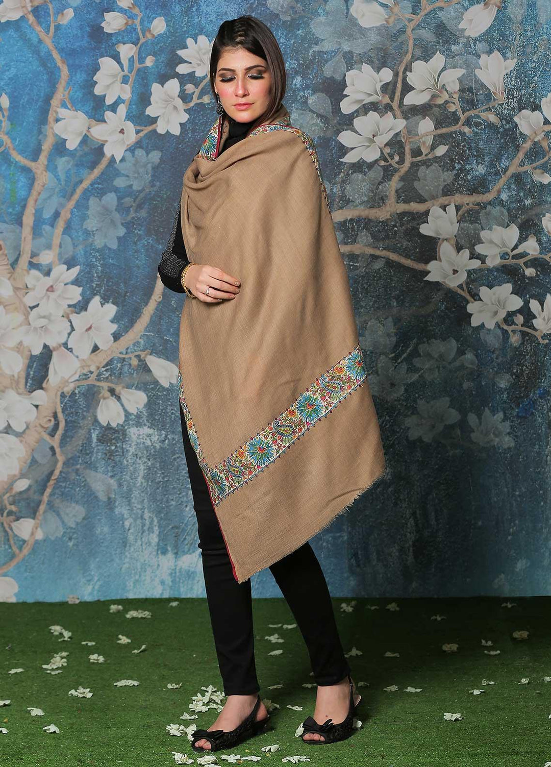 Sanaulla Exclusive Range Embroidered Pashmina Shawl SU21PP AKP-34 Fawn-10 - Pure Pashmina Shawls