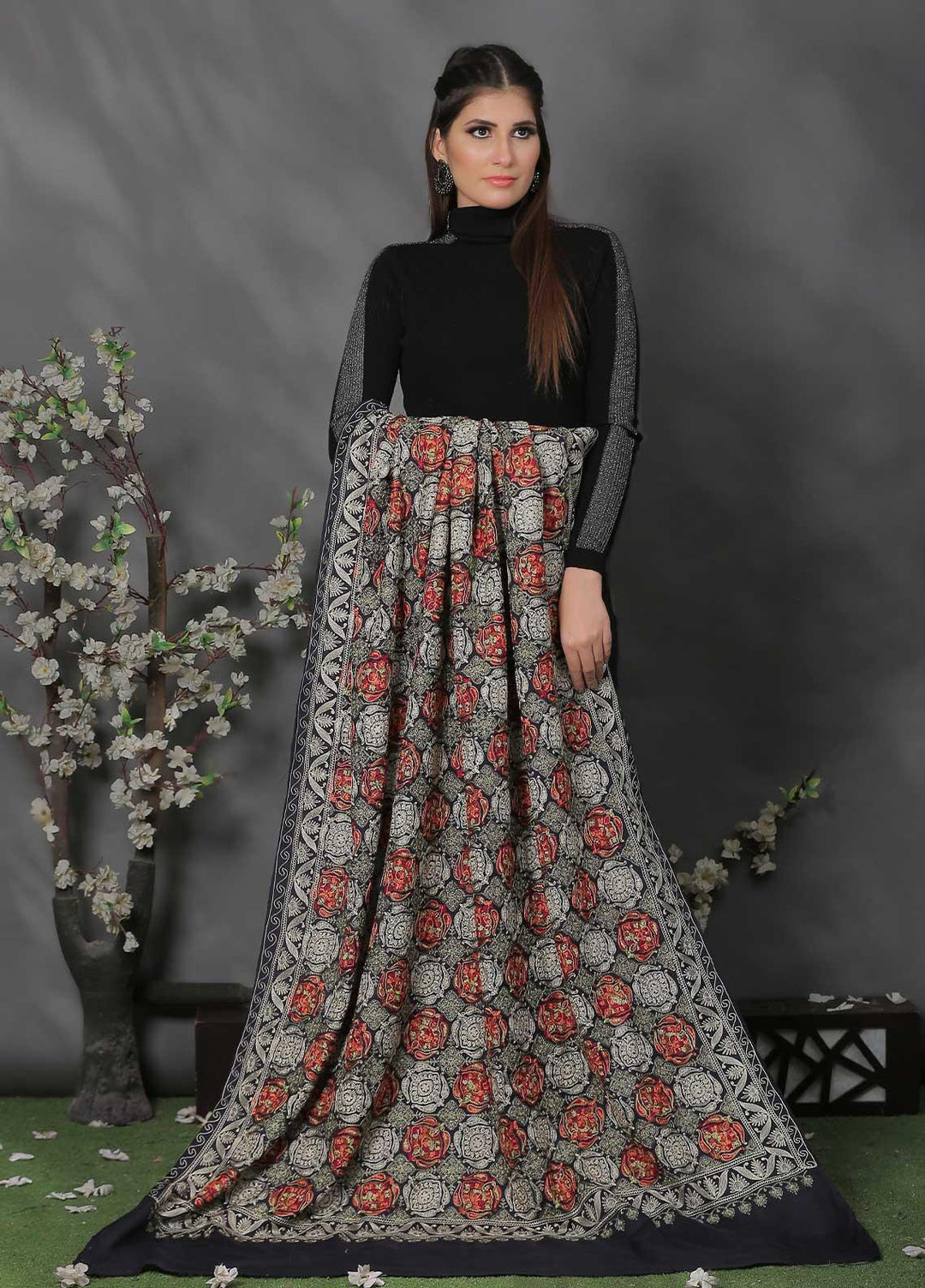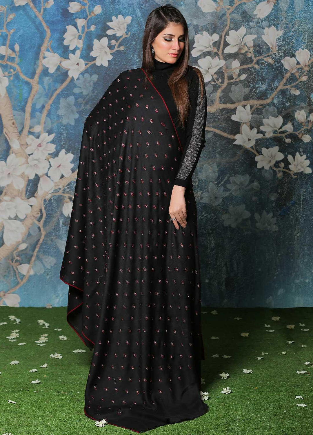 Sanaulla Exclusive Range Embroidered Pashmina Shawl SU21PP AKP-18 Black - Pure Pashmina Shawls