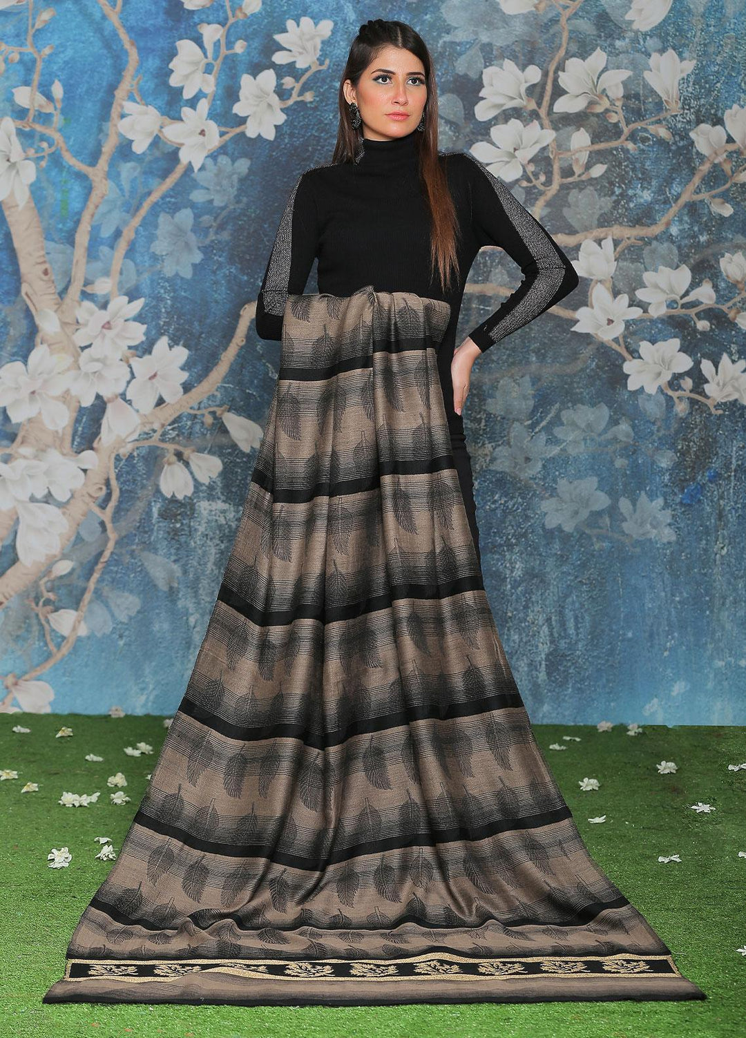 Sanaulla Exclusive Range Embroidered Pashmina Shawl AKP-52 D Brown-2 - Pashmina Shawls