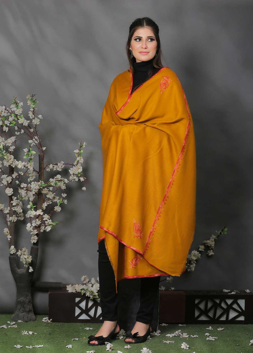 Sanaulla Exclusive Range Embroidered Pashmina Shawl SU21PP AKP-07 Orange - Pure Pashmina Shawls