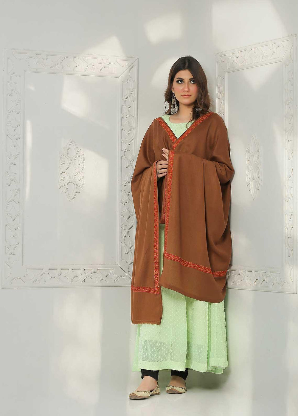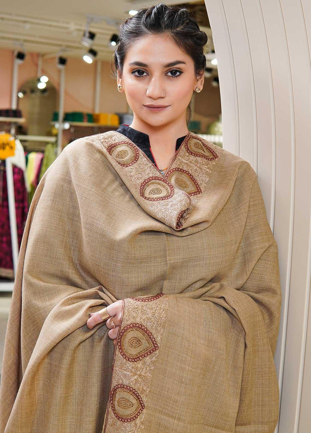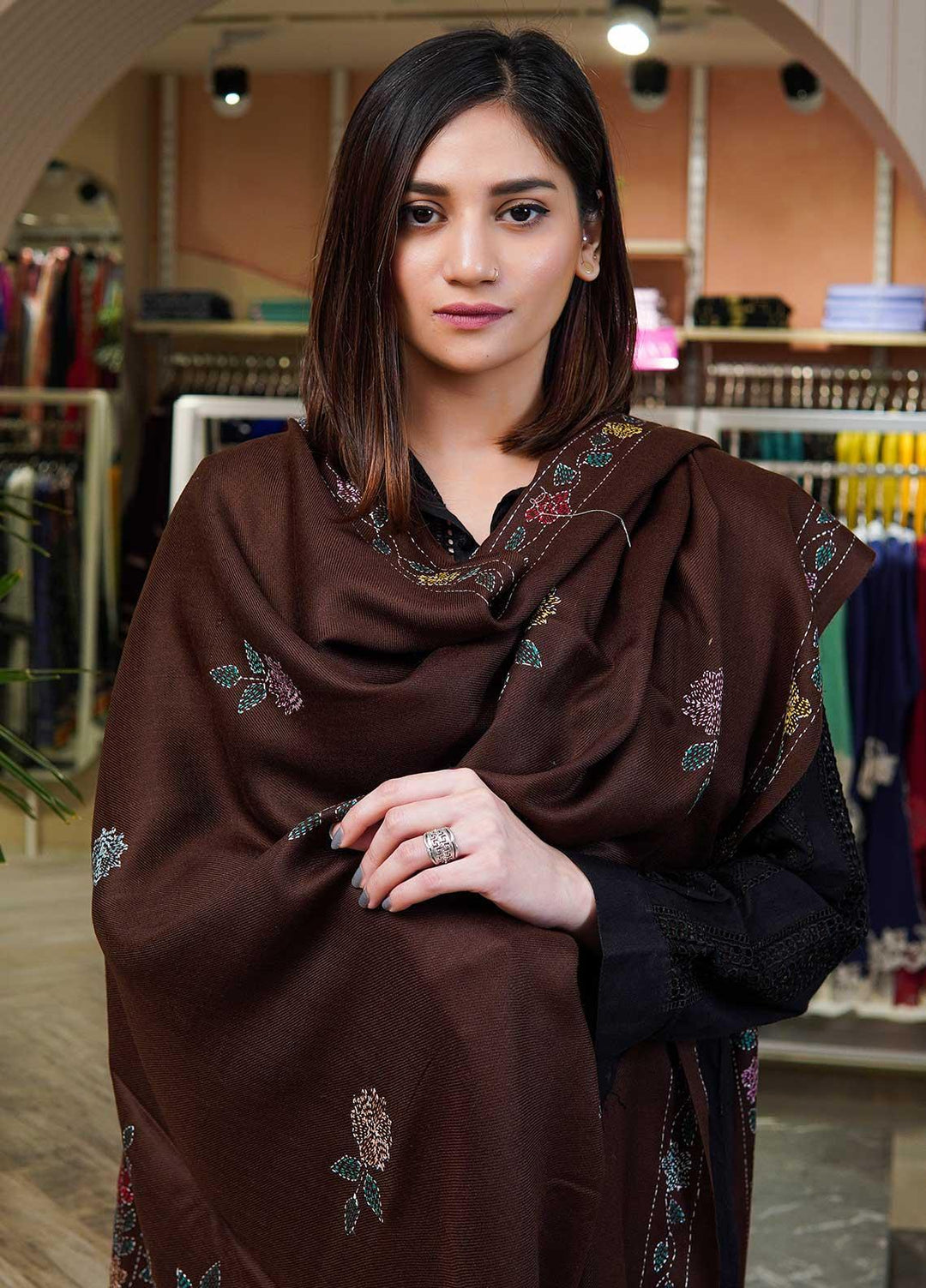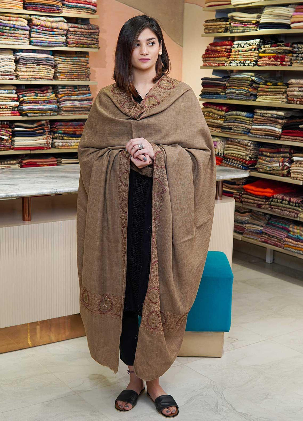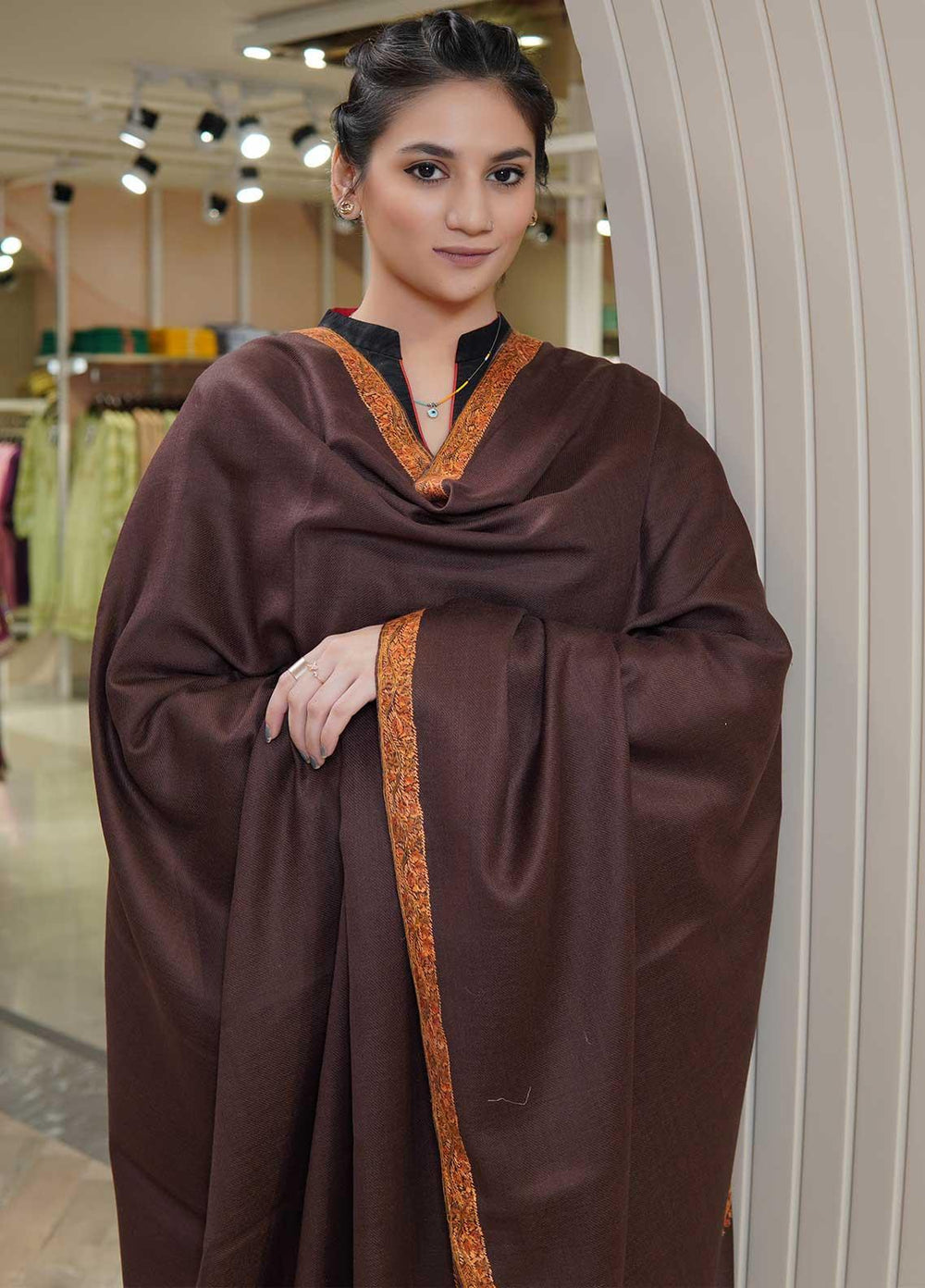 Sanaulla Exclusive Range Embroidered Pashmina Shawl AKP-50 Brown-10 - Pashmina Shawls