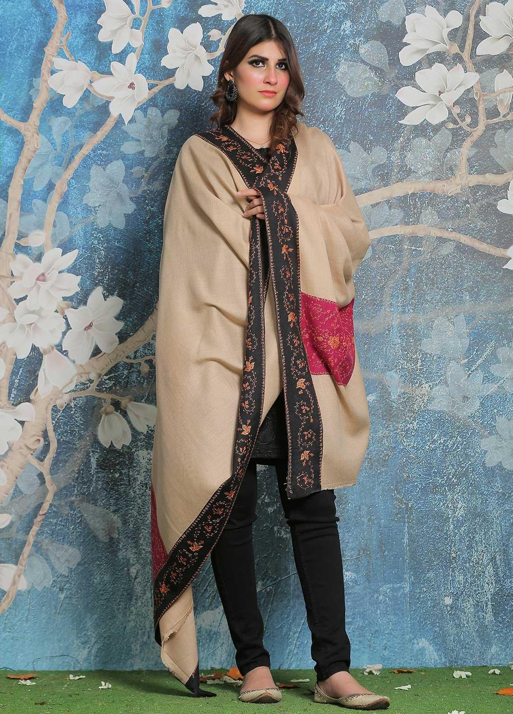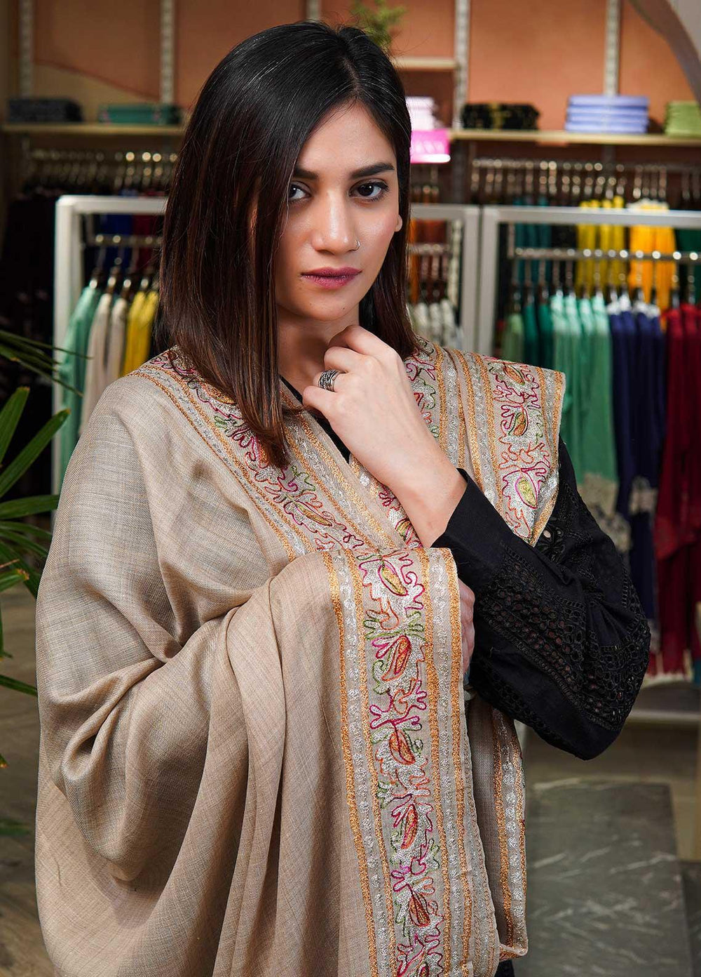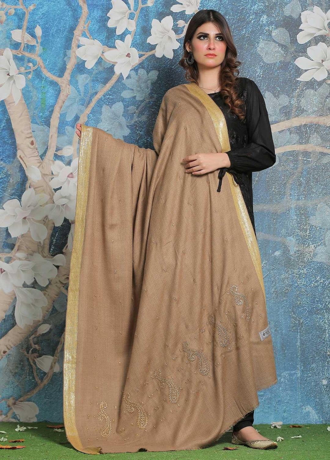 Sanaulla Exclusive Range Pashmina Shawls Siroski Pasily Ad KPS-30 Fawn03 - Pashmina Shawls