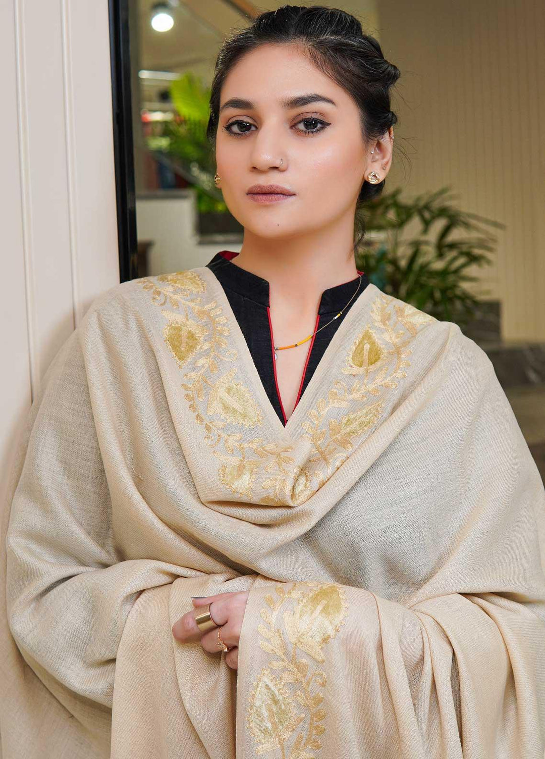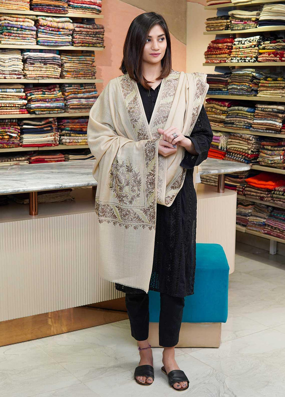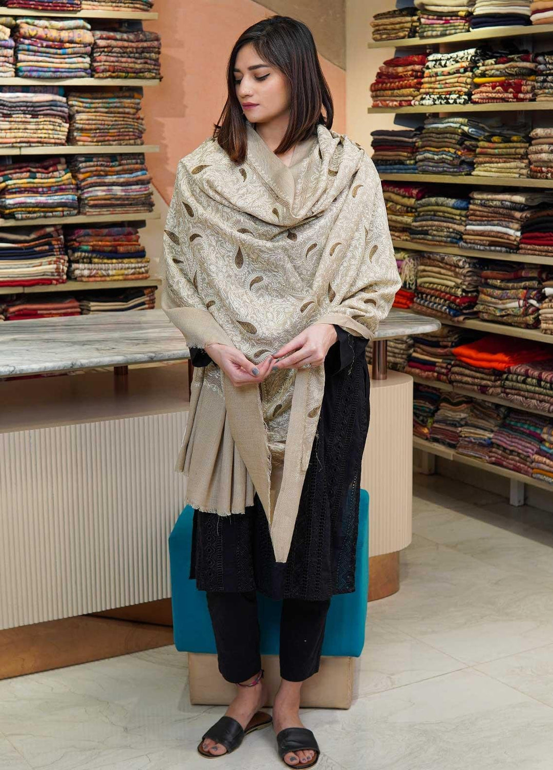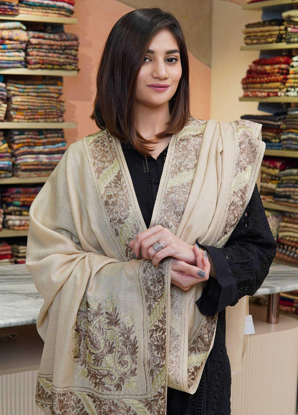 Sanaulla Exclusive Range Pashmina Shawls MAMA-50 Beige-2 - Pashmina Shawls