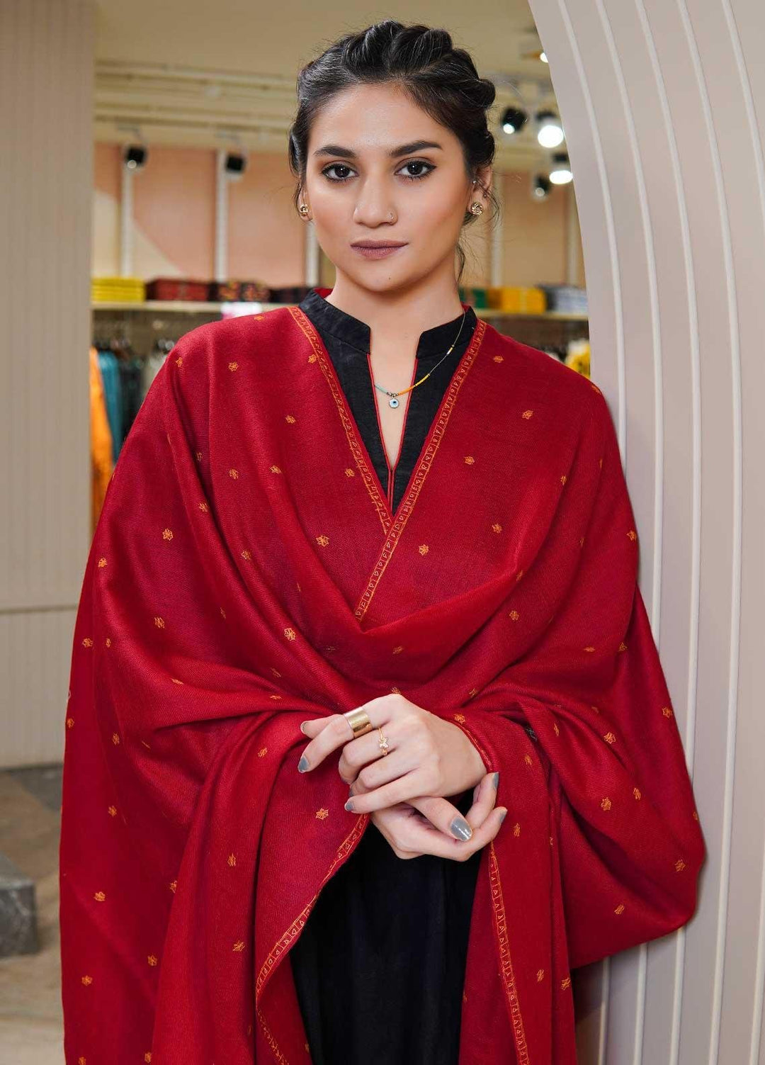 Sanaulla Exclusive Range Embroidered Pashmina Shawl MIR-40 Red - Pashmina Shawls
