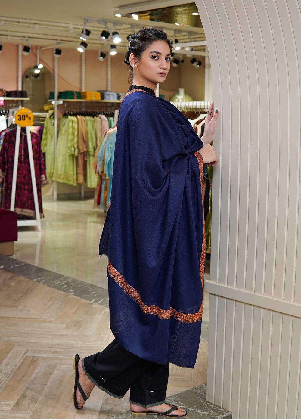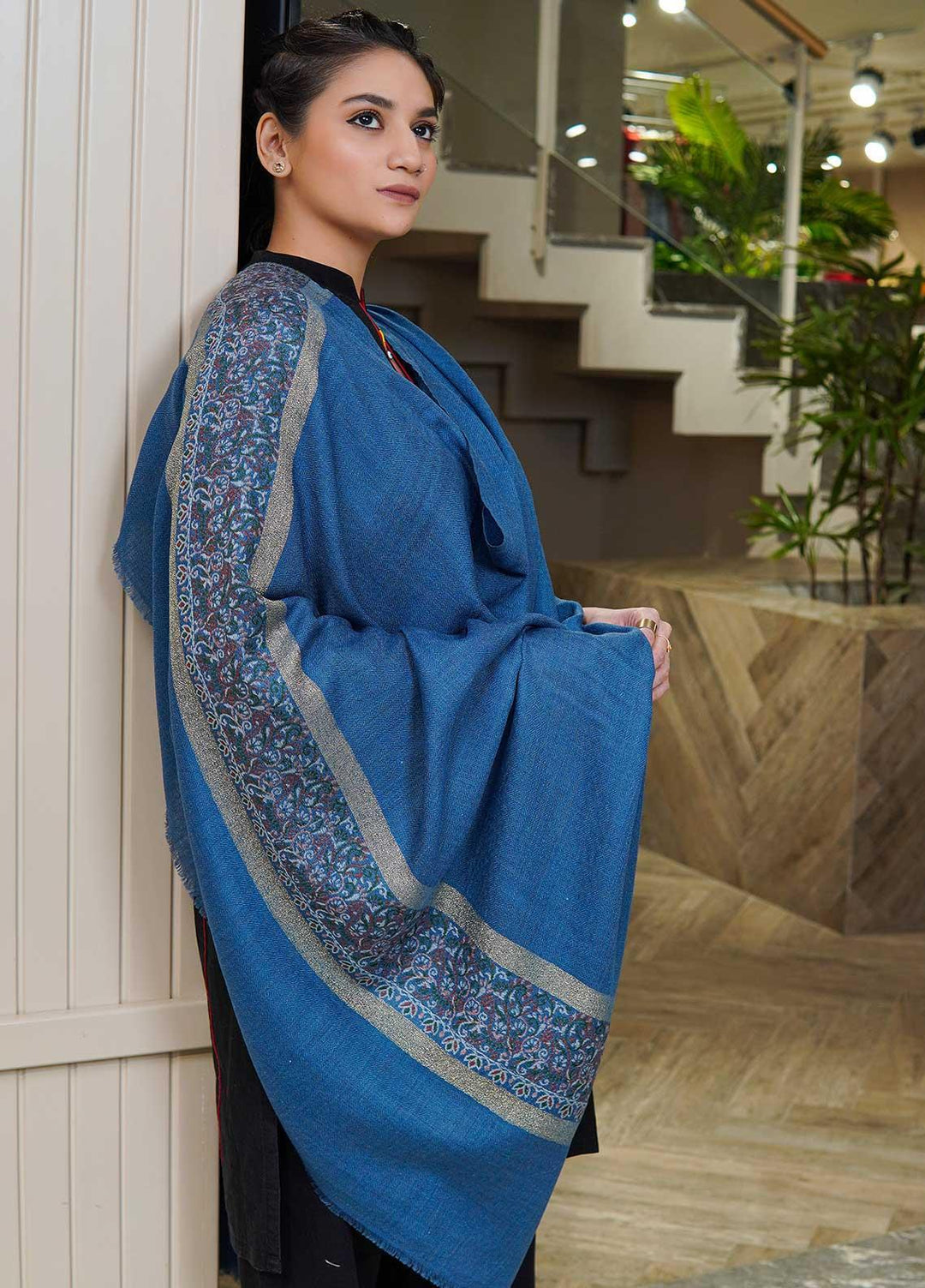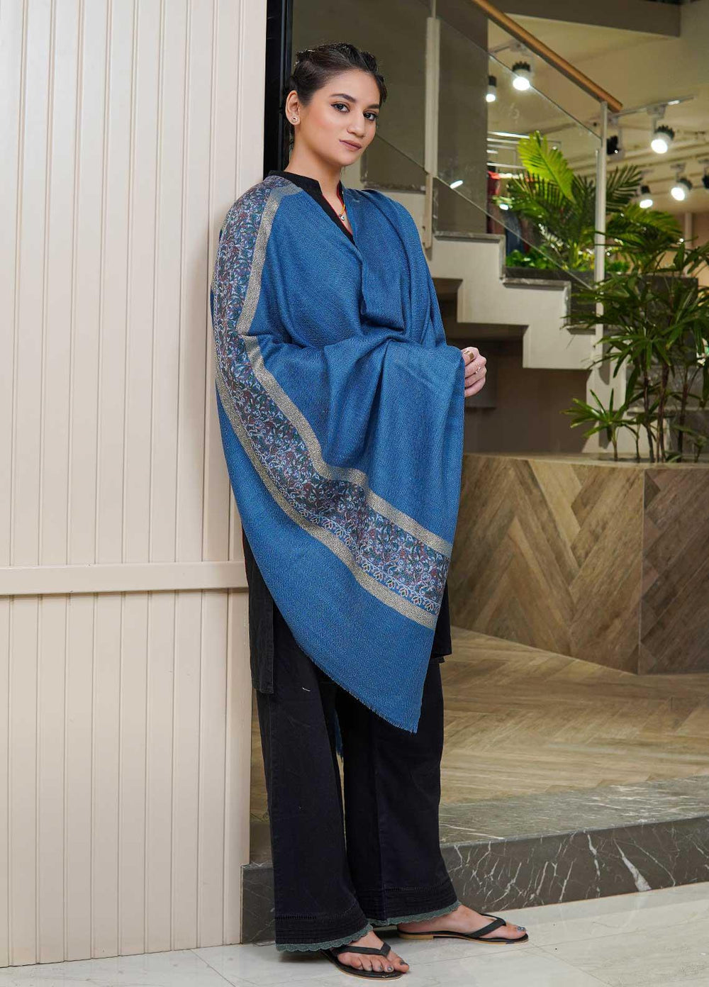 Sanaulla Exclusive Range Pashmina Shawls MAMA-18 Blue-3 - Pashmina Shawls