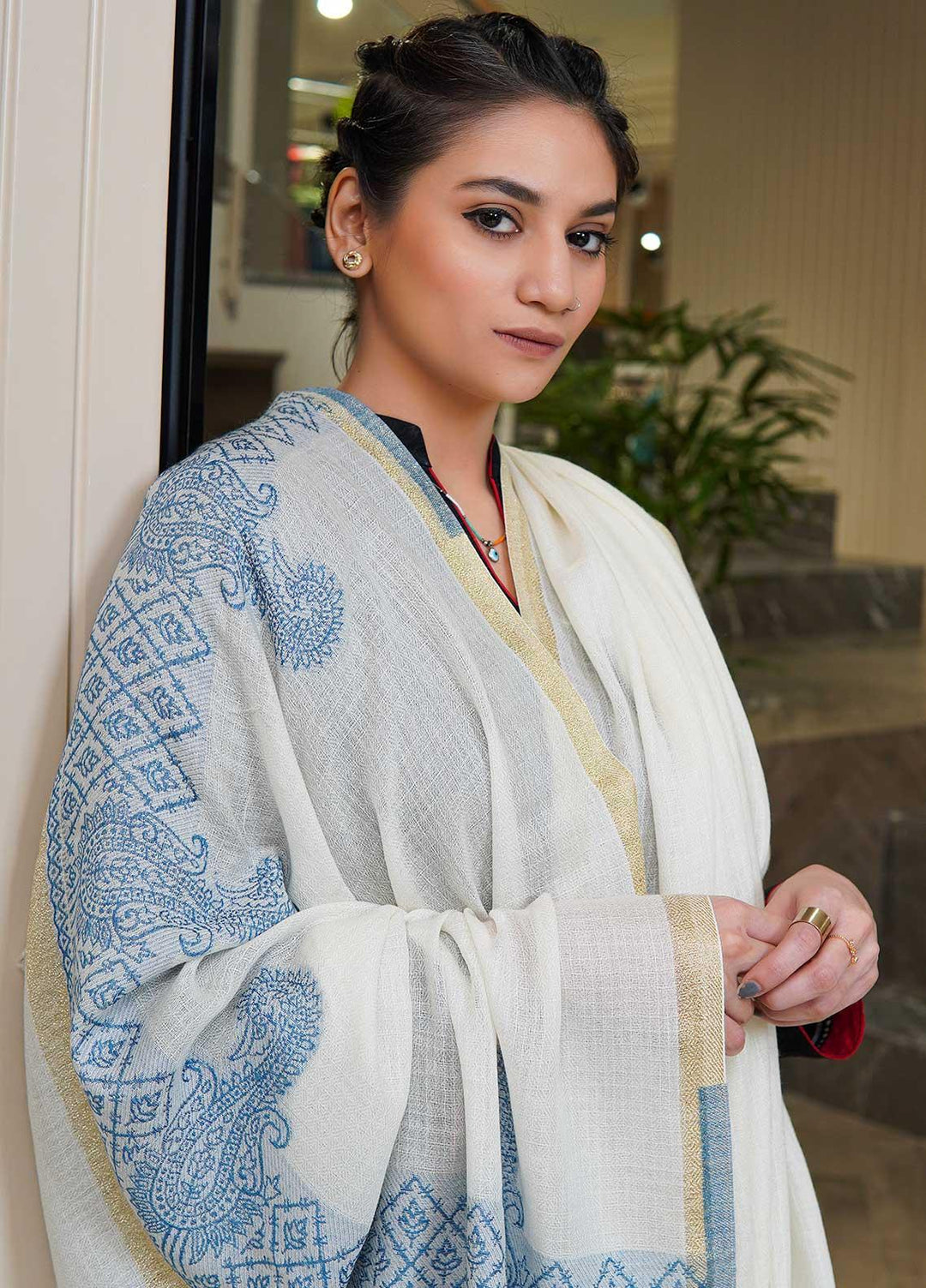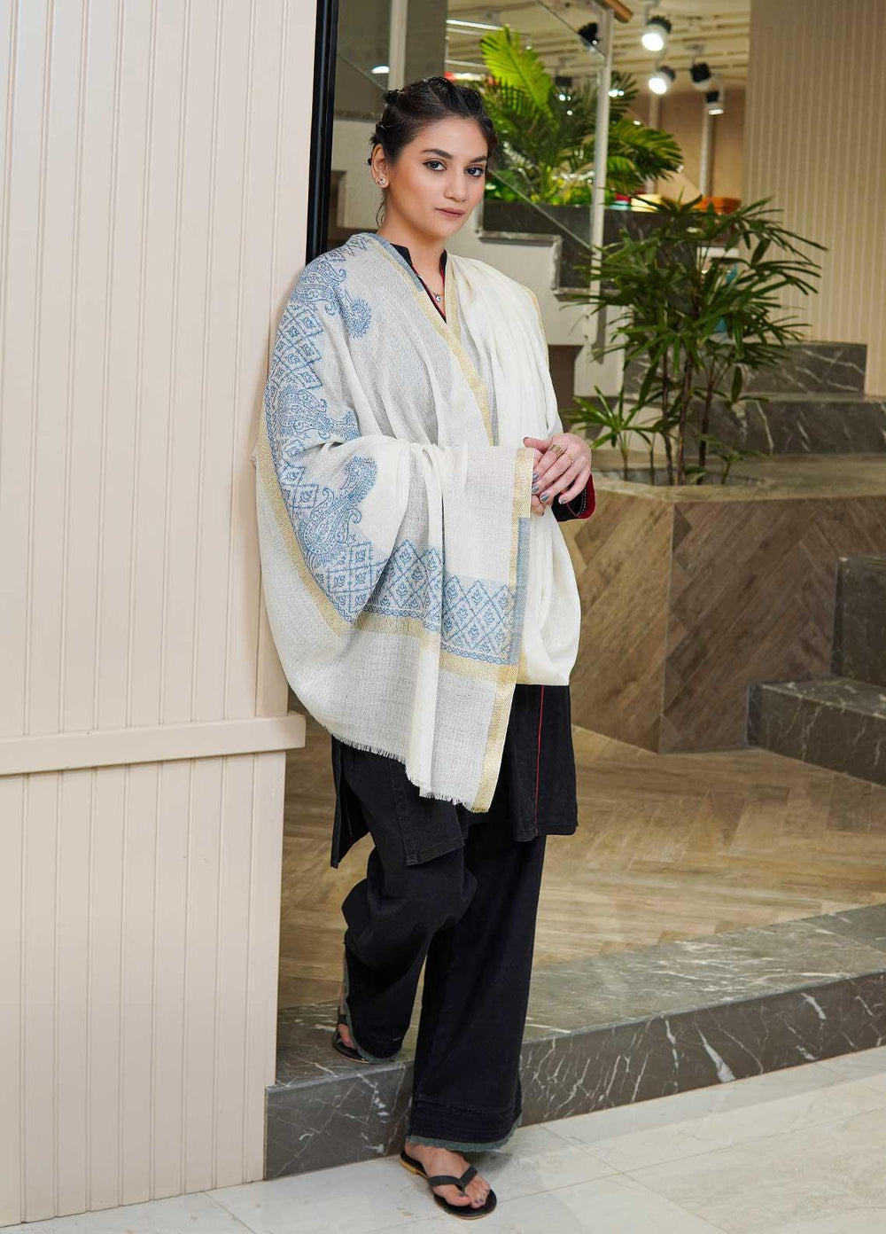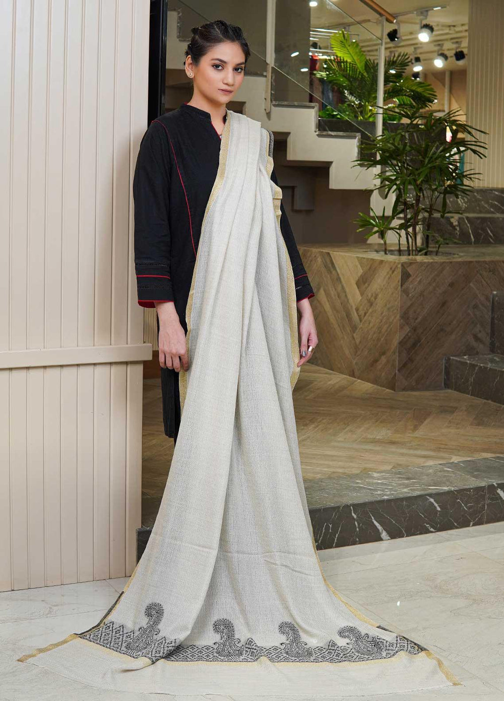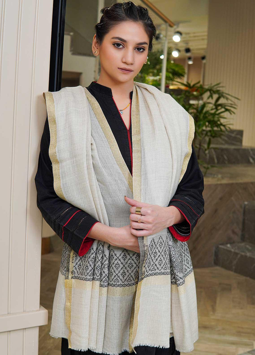 Sanaulla Exclusive Range Pashmina Shawls MAMA-44 Off White - Pashmina Shawls