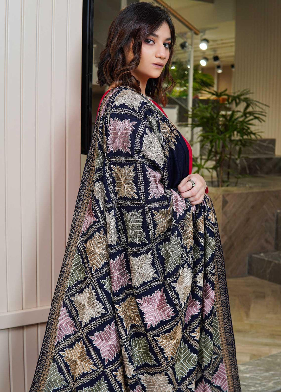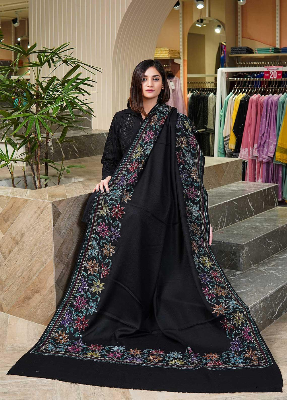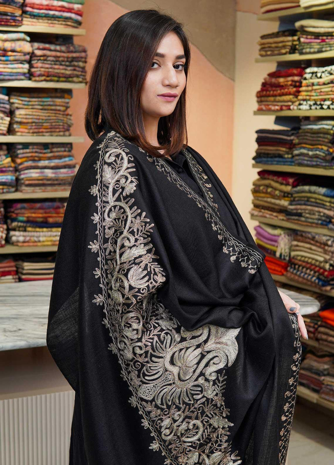 Sanaulla Exclusive Range Pashmina Shawls Multi Palla Emb DD KPS-45 Black05 - Pashmina Shawls