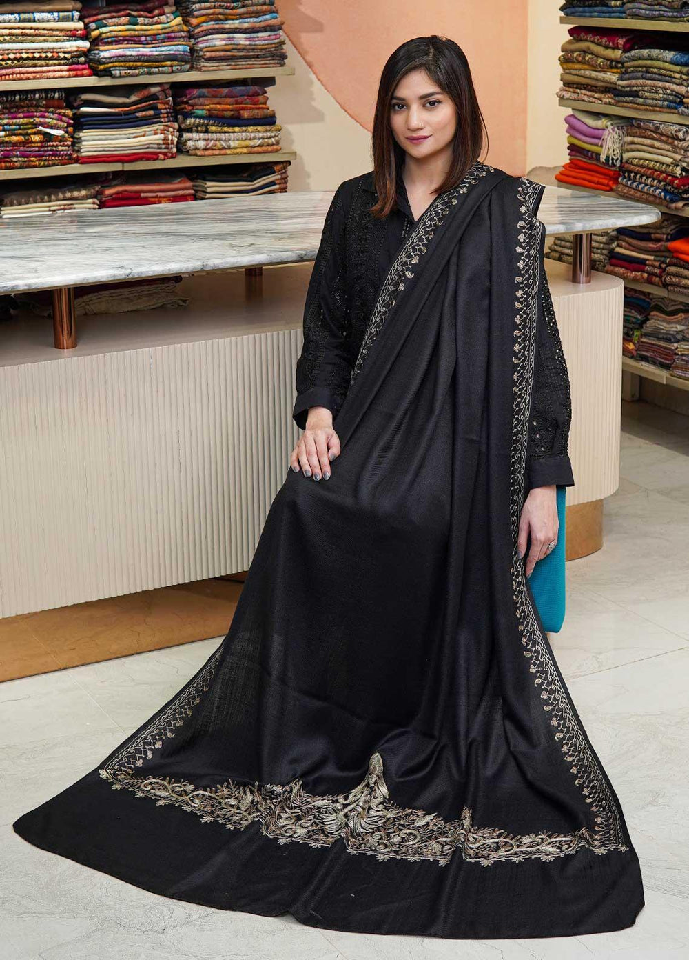 Sanaulla Exclusive Range Embroidered Pashmina Shawl AKP-07 Black-1 - Pashmina Shawls