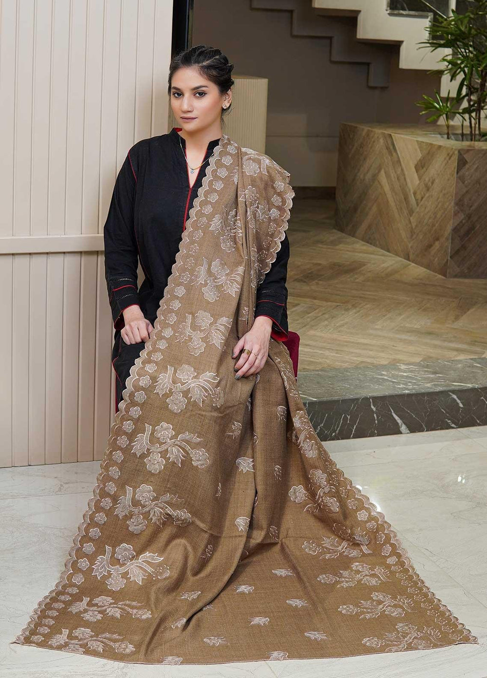 Sanaulla Exclusive Range Pashmina Shawls Shadow Emb Paala KPS-08 Dark Brown01 - Pashmina Shawls