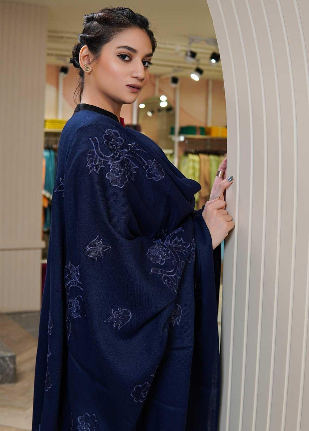 Sanaulla Exclusive Range Pashmina Shawls MAMA-44 Blue-3 - Pashmina Shawls