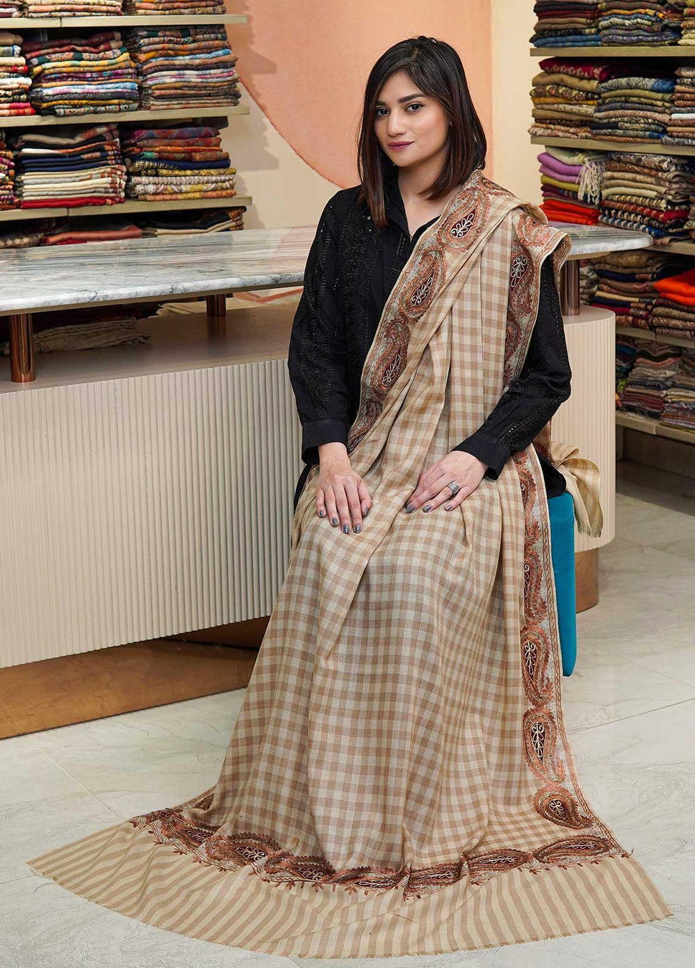 Sanaulla Exclusive Range Pashmina Shawls MAMA-24 Fawn-2 - Pashmina Shawls