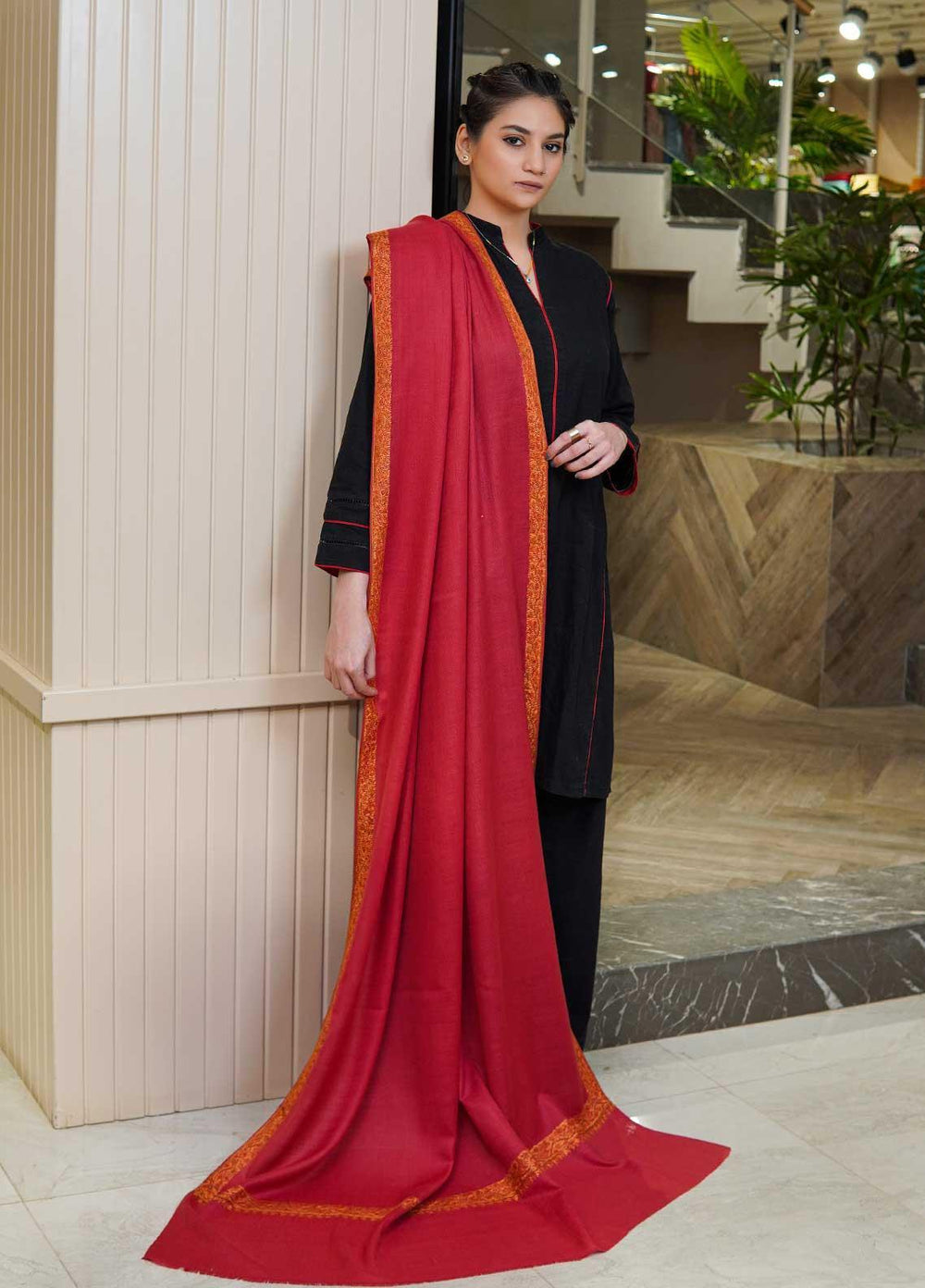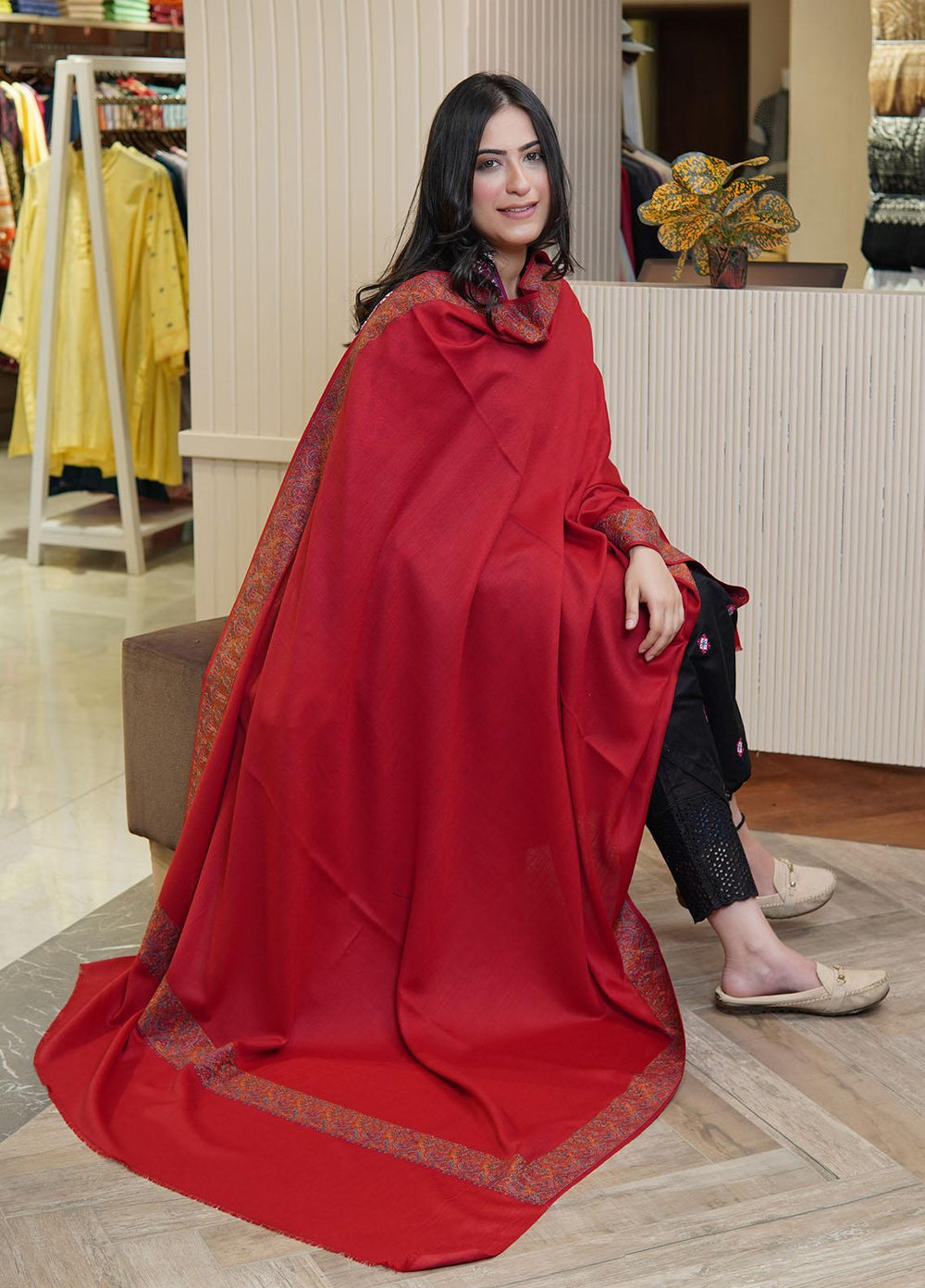 Sanaulla Exclusive Range Pashmina Shawls MAMA-29 Red-1 - Pashmina Shawls