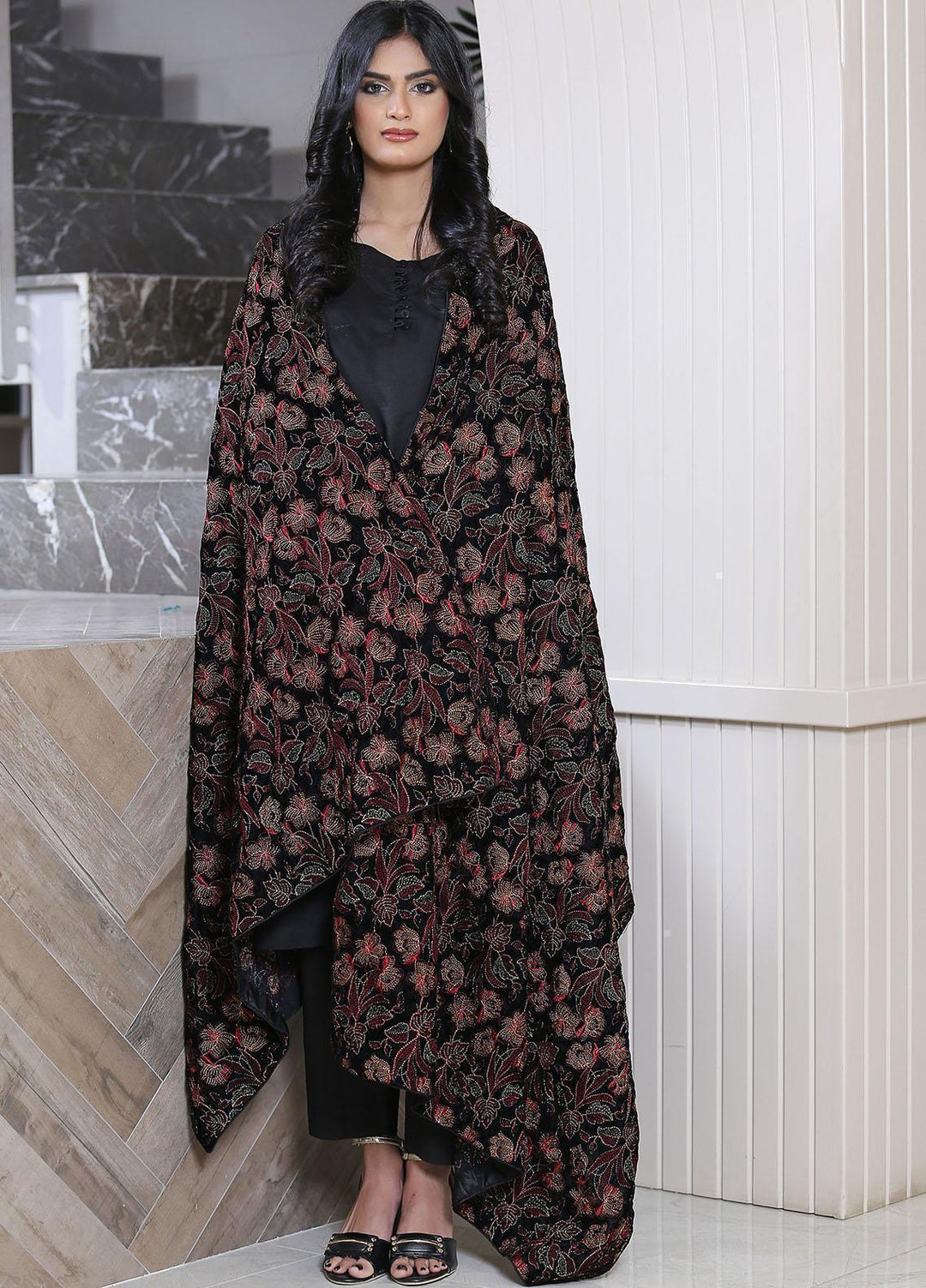 Sanaulla Exclusive Range Pashmina Velvet D No S-53 KPS-60 Black - Women Shawls