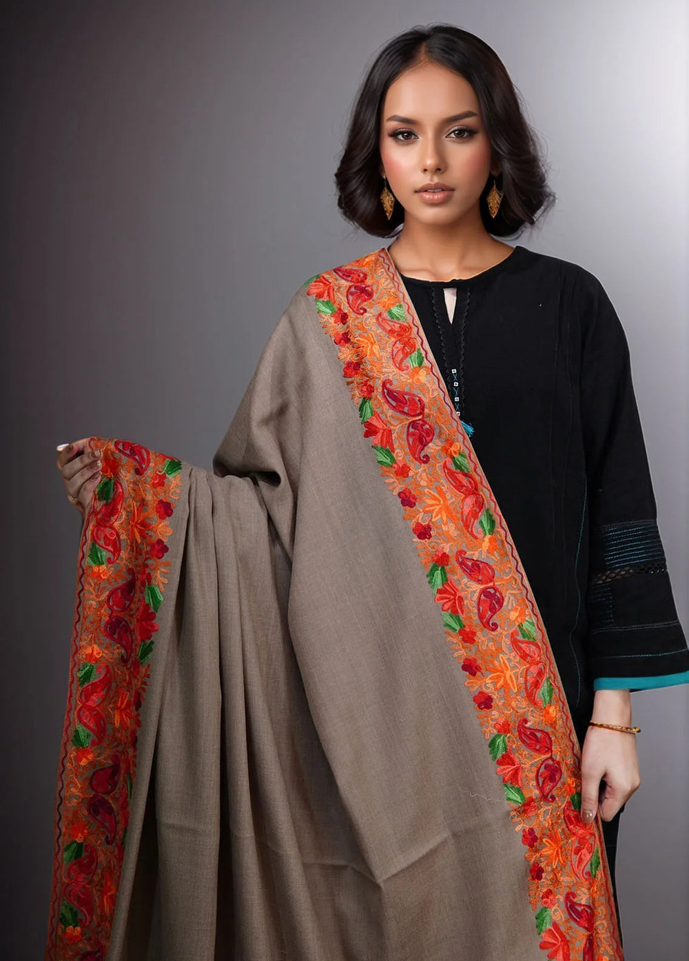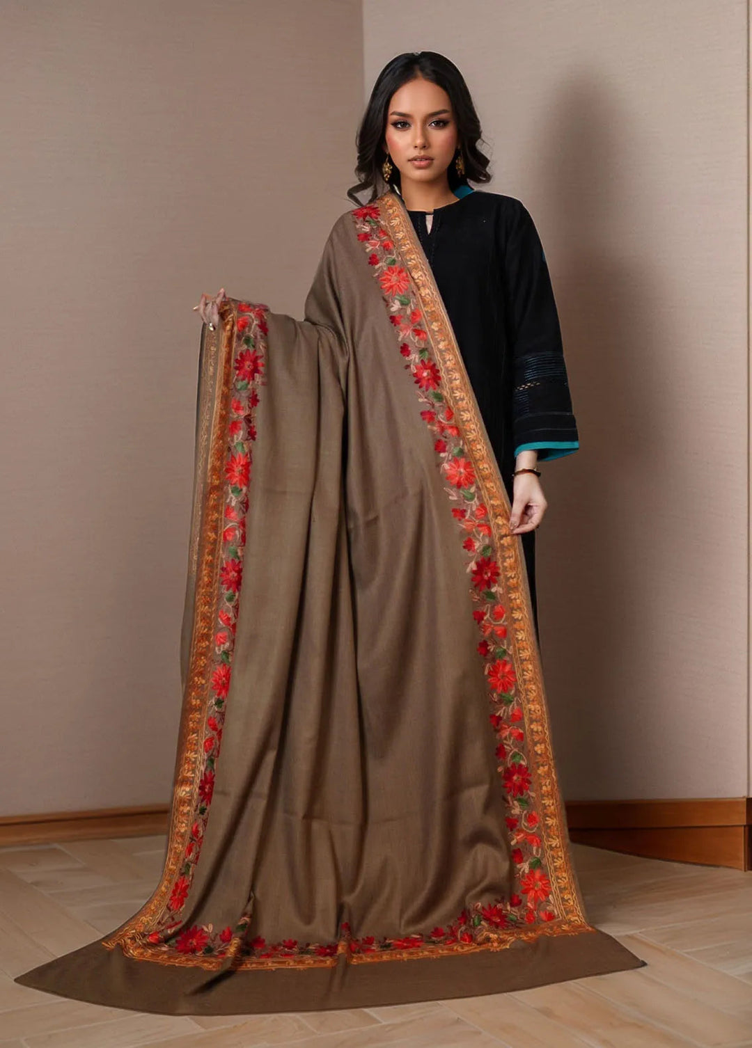 Sanaulla Exclusive Range Pashmina Shawl MAMA D-15 Dark Brown - Winter Collection