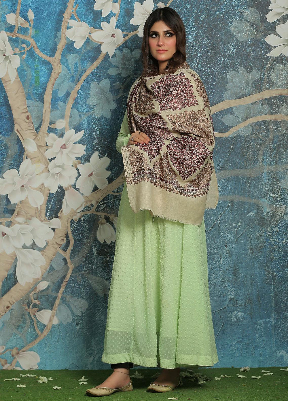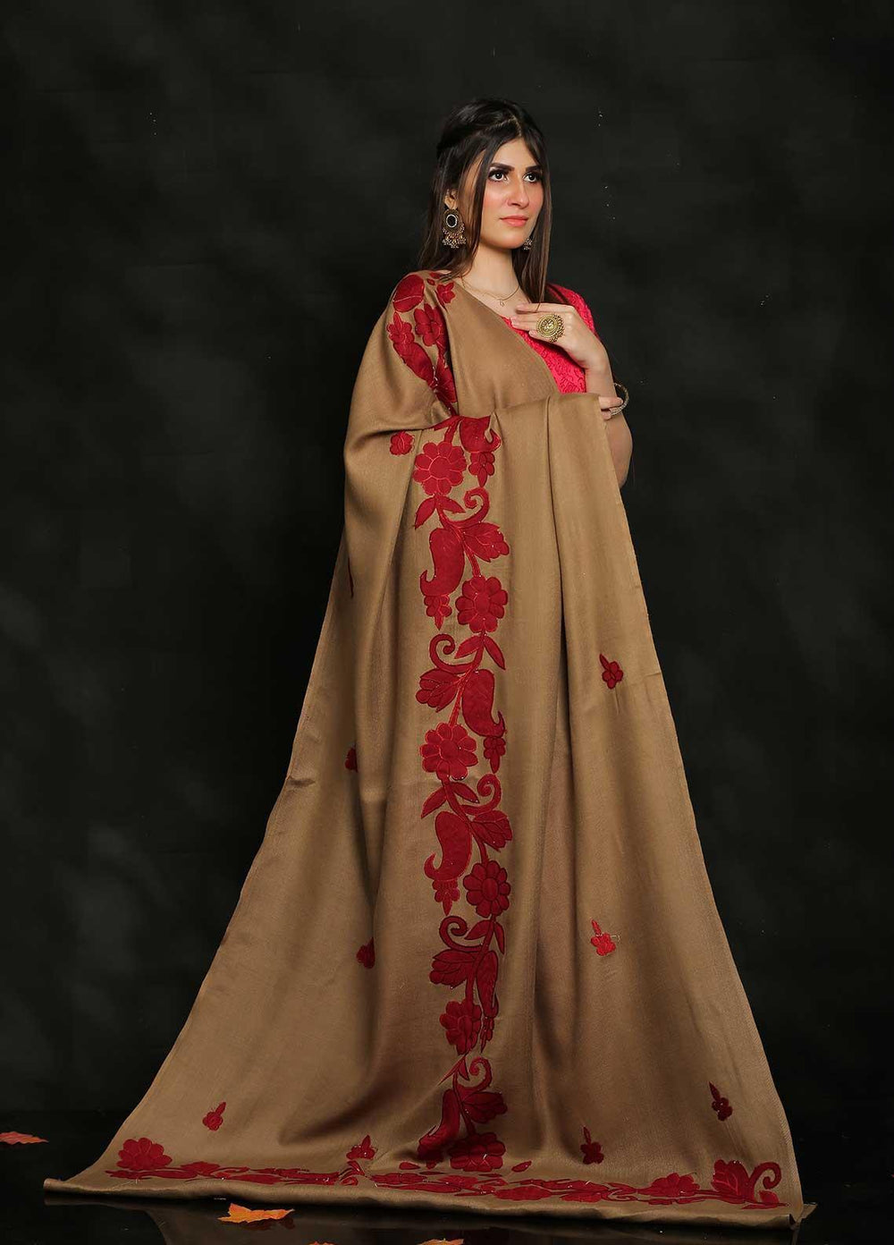 Sanaulla Exclusive Range Embroidered Pashmina Shawl AKP-31 Fawn-4 - Pashmina Shawls