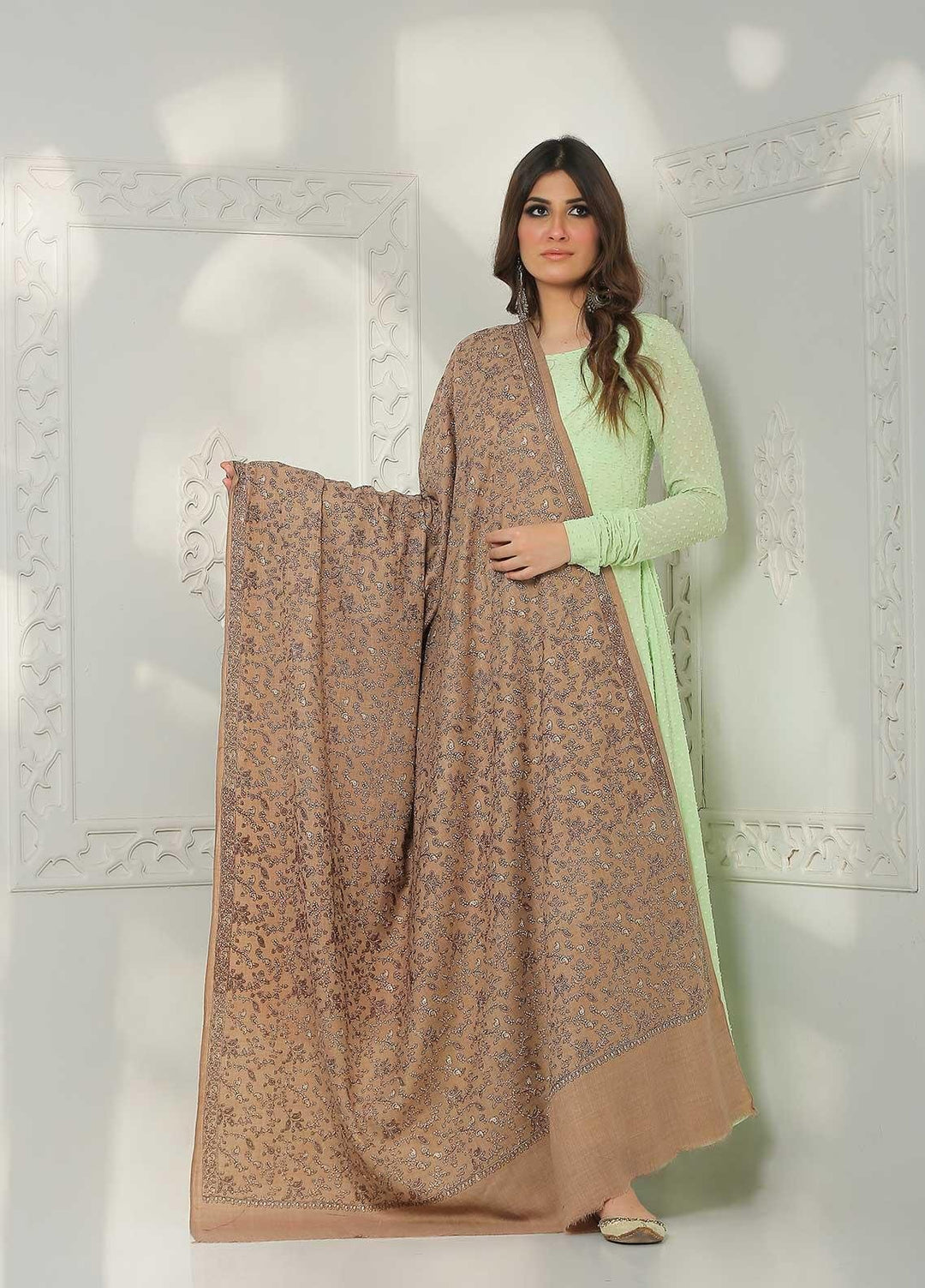 Sanaulla Exclusive Range Embroidered Pashmina Shawl AKP-11 Fawn-8 - Pashmina Shawls