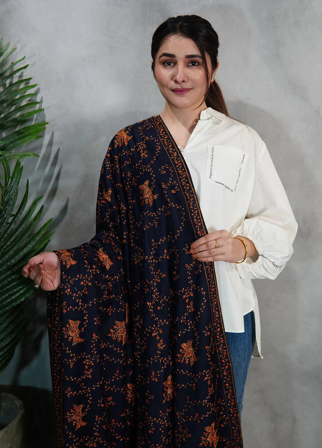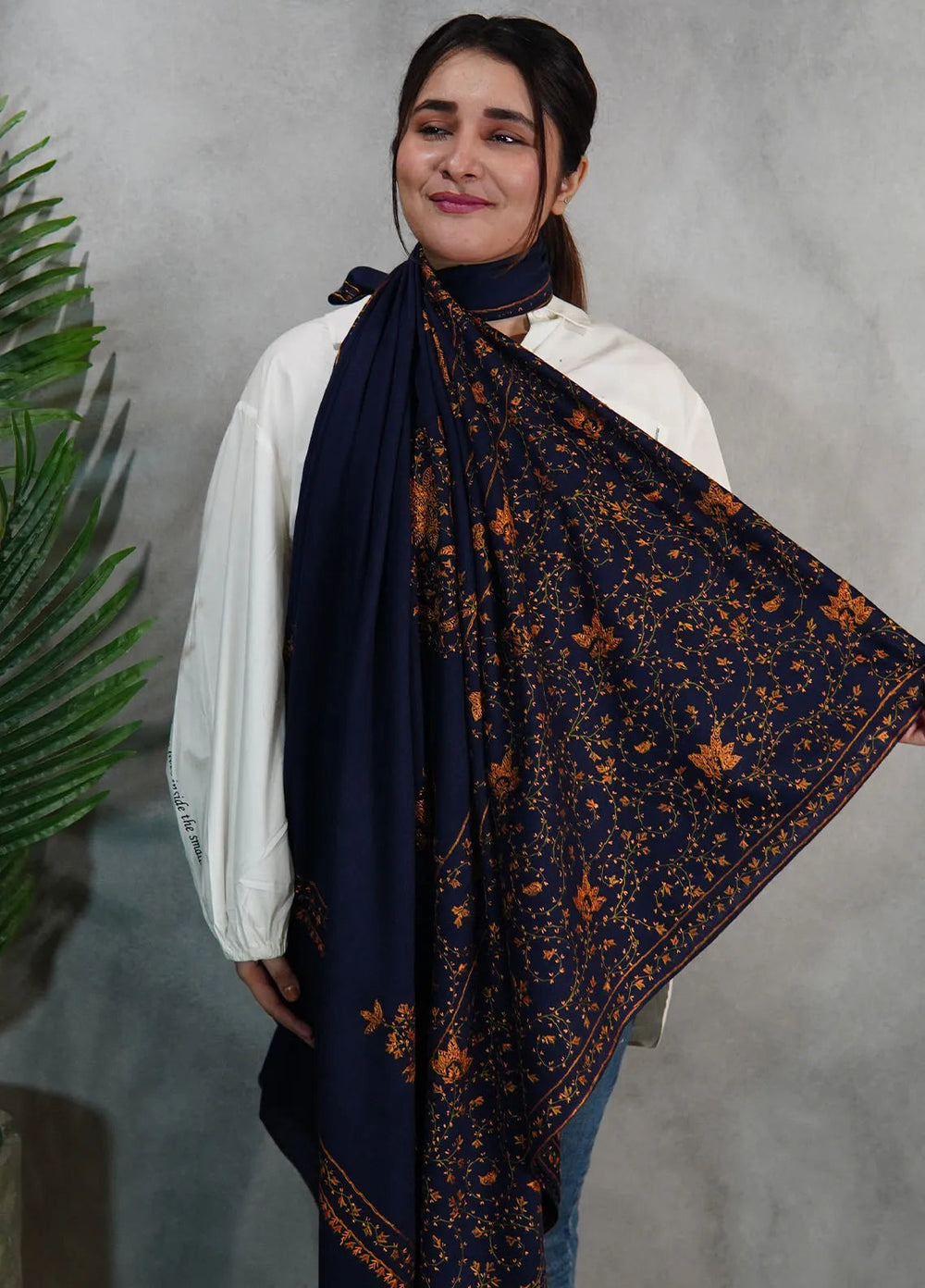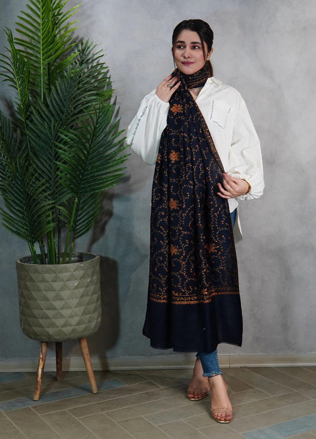 Sanaulla Exclusive Range Pashmina Shawl KPS D-57 Navy Blue 1 - Winter Collection