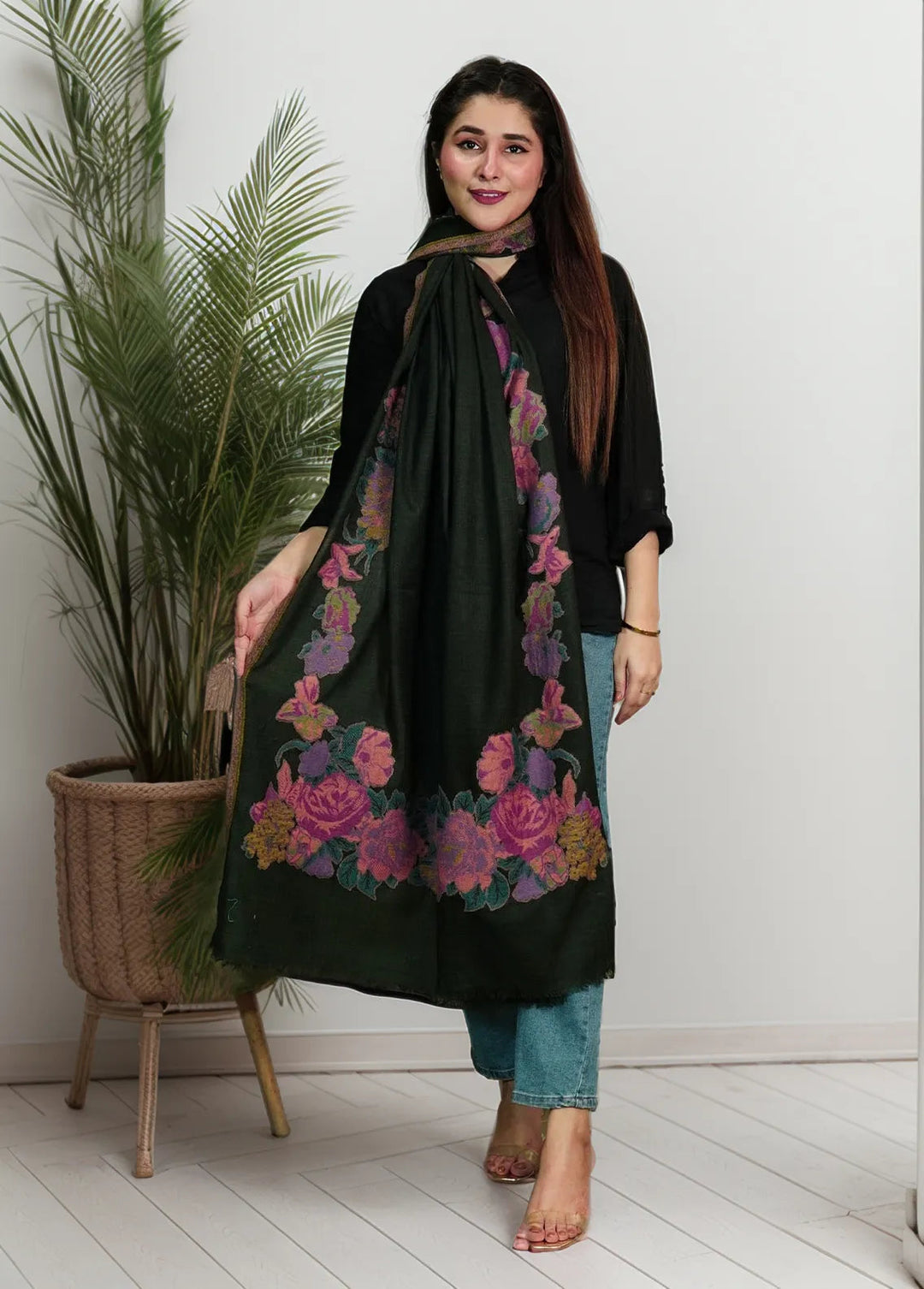 Sanaulla Exclusive Range Pashmina Shawl KPS D-67 Dark Green 2 - Winter Collection