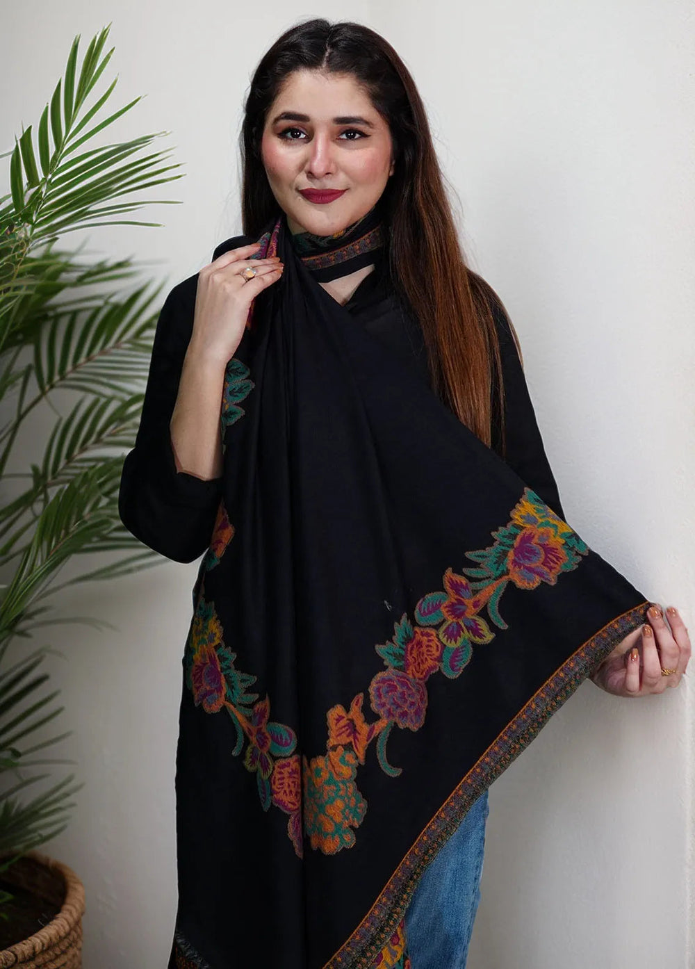 Sanaulla Exclusive Range Pashmina Shawl KPS D-37 Black - Winter Collection
