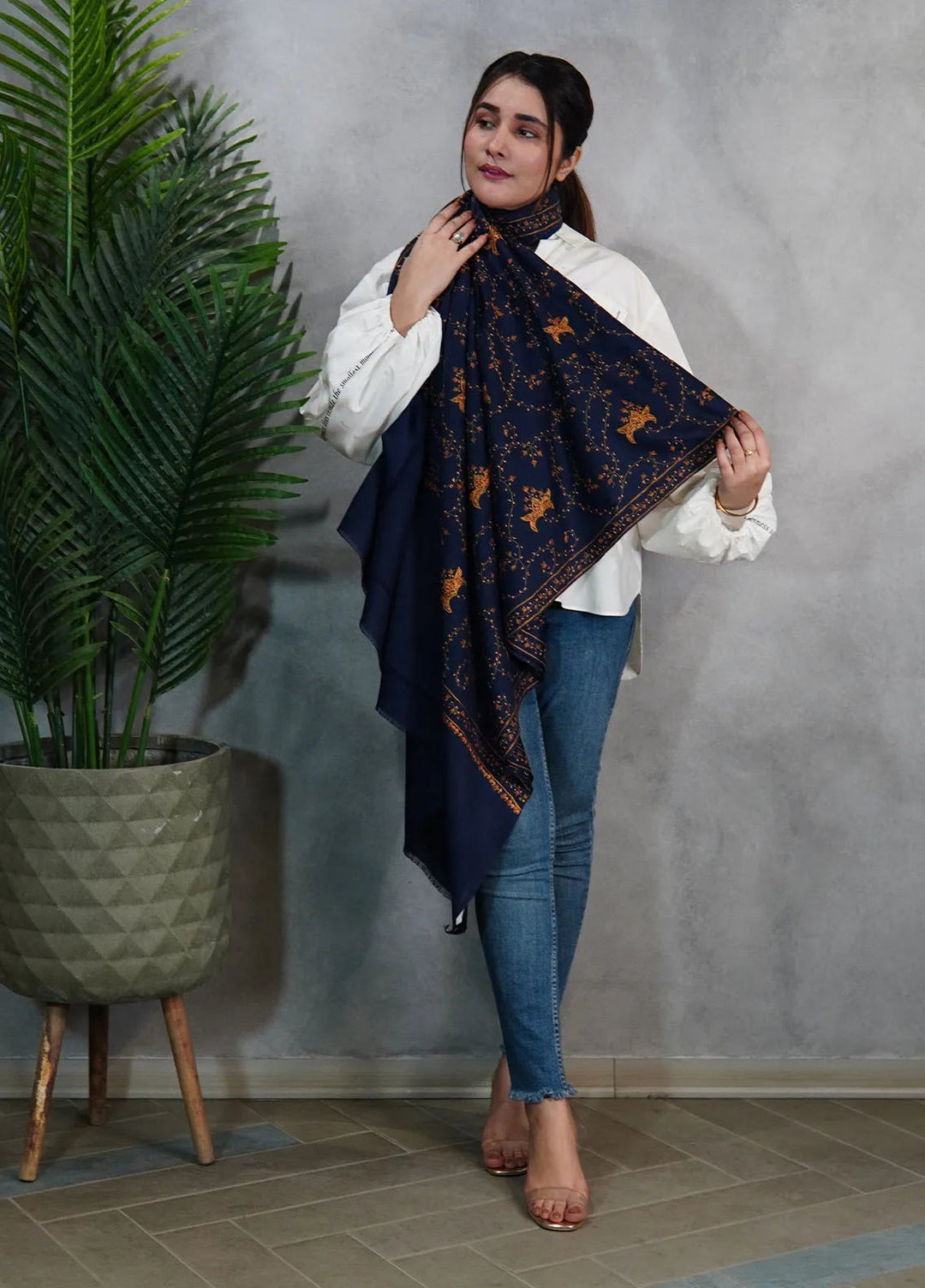 Sanaulla Exclusive Range Pashmina Shawl KPS D-39 Navy Blue 1 - Winter Collection