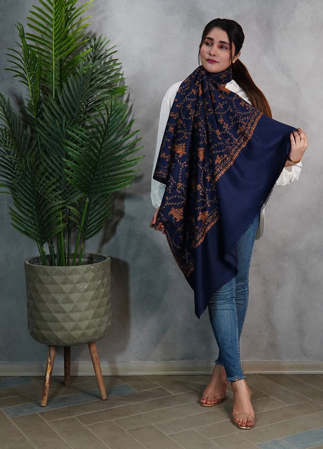 Sanaulla Exclusive Range Pashmina Shawl KPS D-57 Dark Blue 1 - Winter Collection