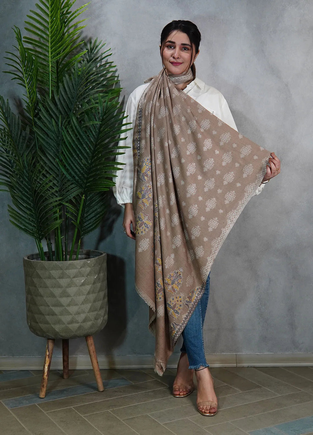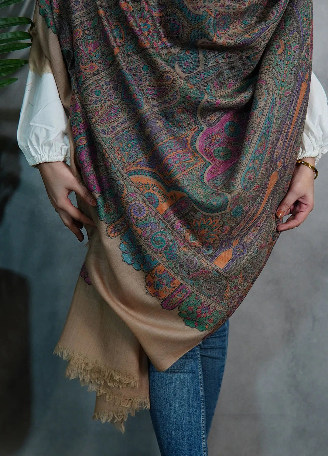 Sanaulla Exclusive Range Pashmina Shawl MAMA D-5 Fawn - Winter Collection