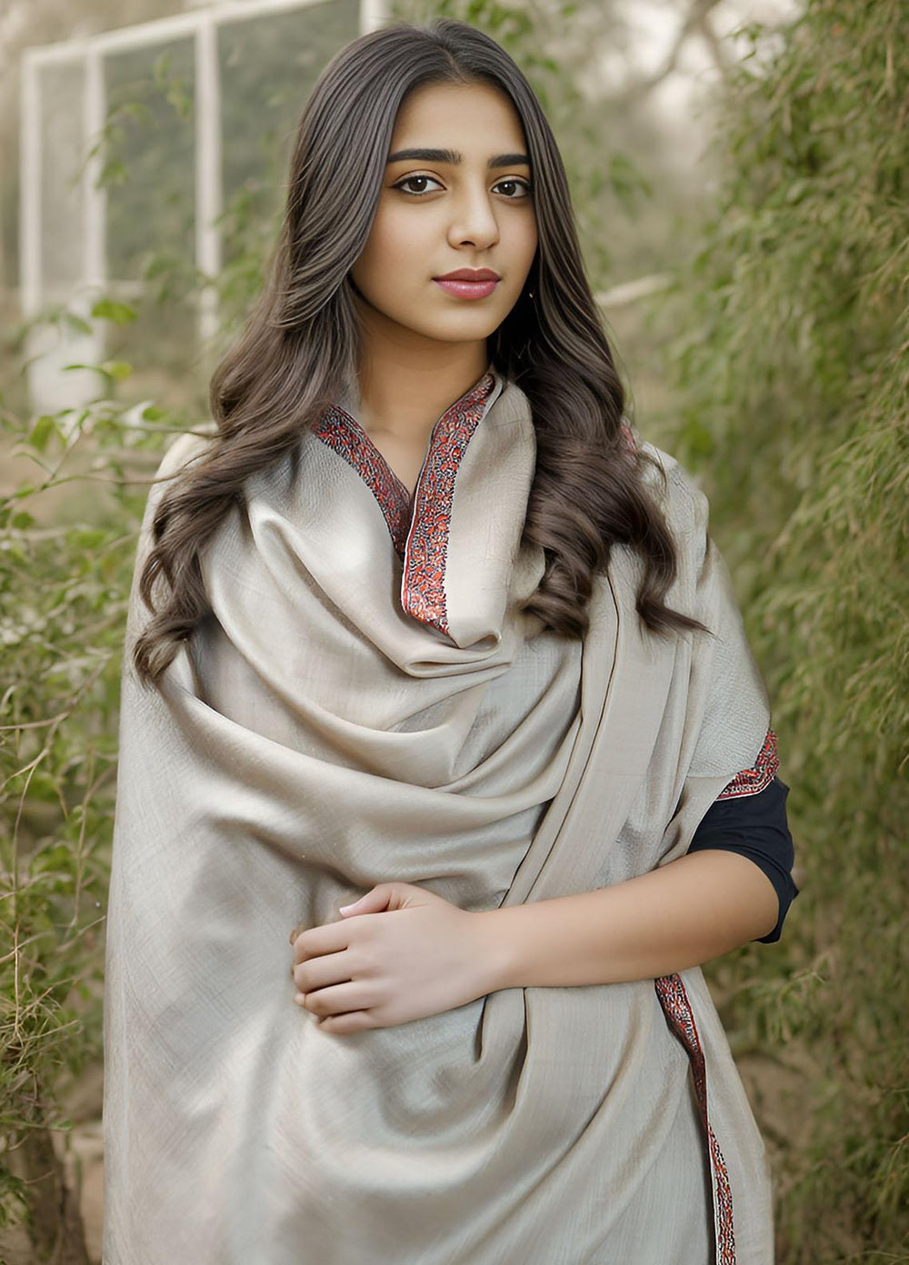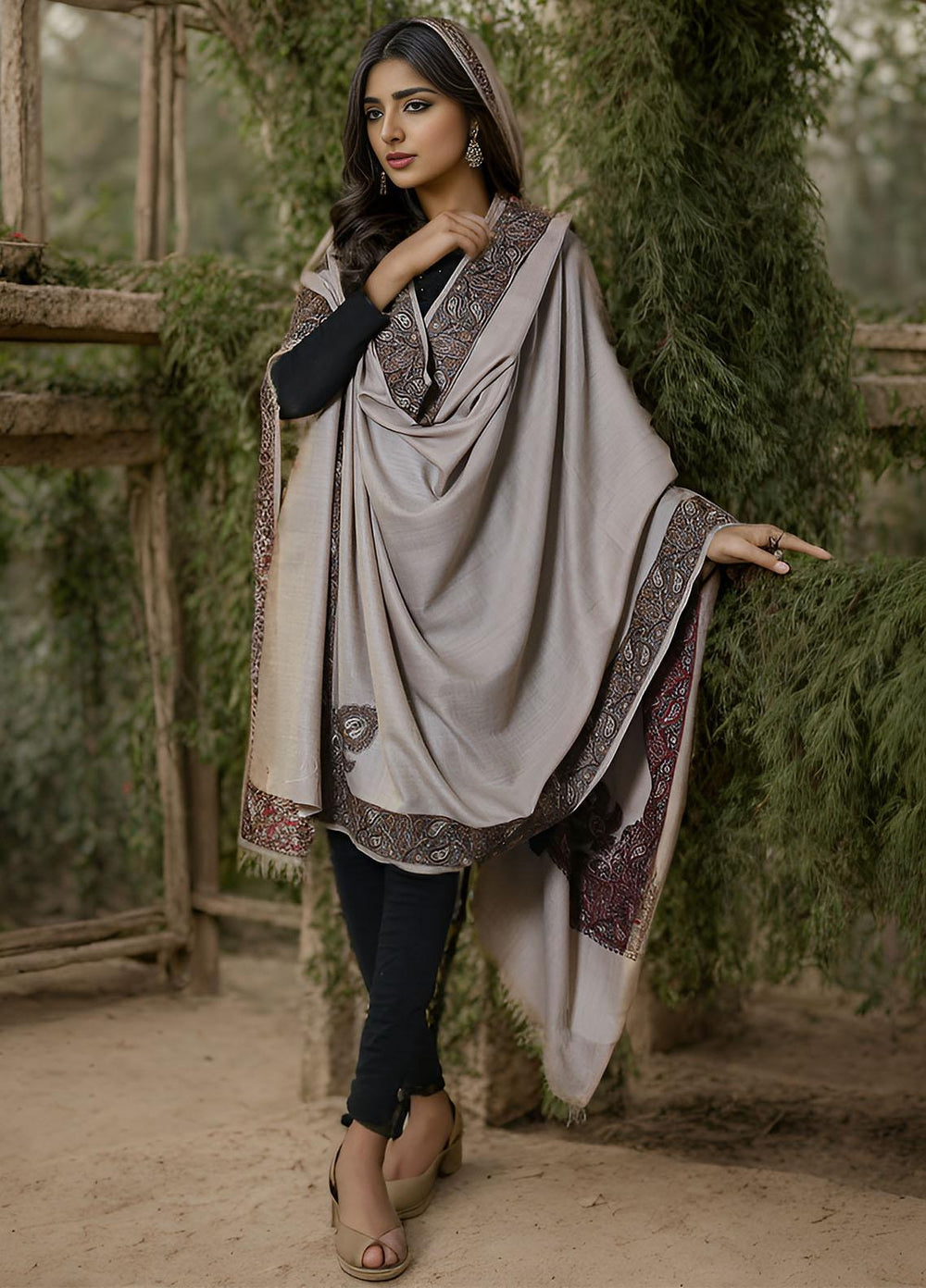 Sanaulla Exclusive Range Pashmina Mama D-03 L Grey - Women Shawls