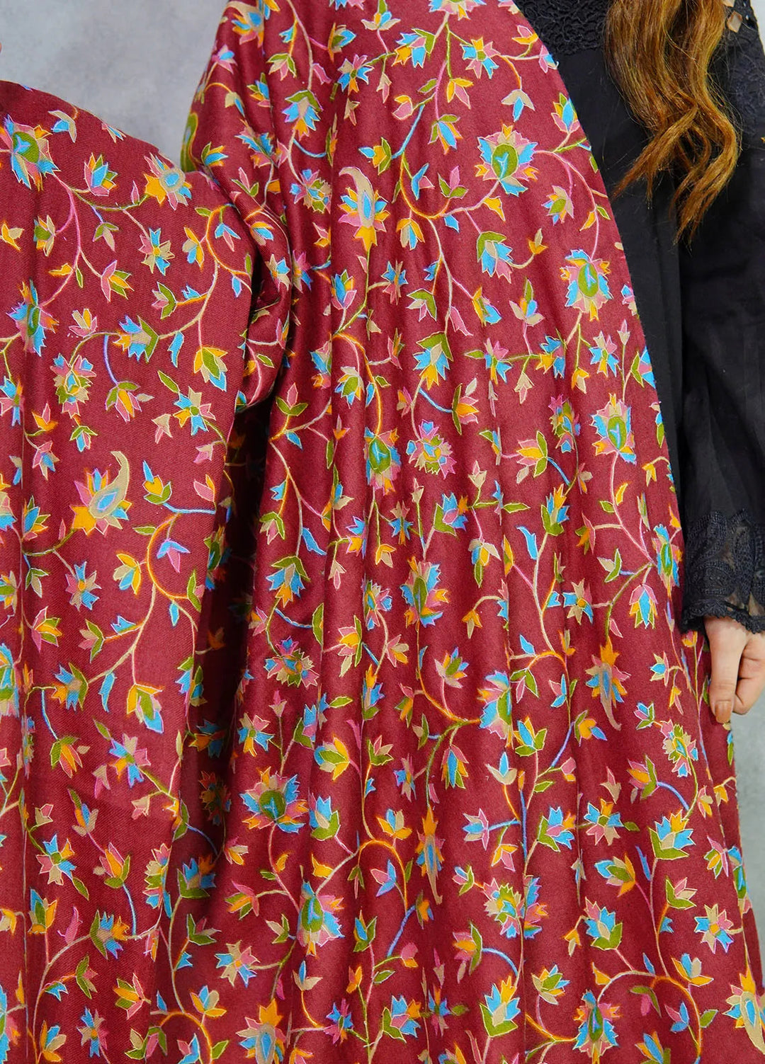 Sanaulla Exclusive Range Pashmina Shawl KPS D-25 Mehroon 1 - Winter Collection