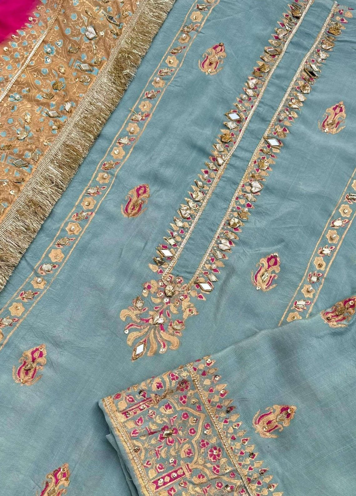 Adaa by Mahnoor Embellished Raw Silk Suits Unstitched 3 Piece Sky - Festive Collection