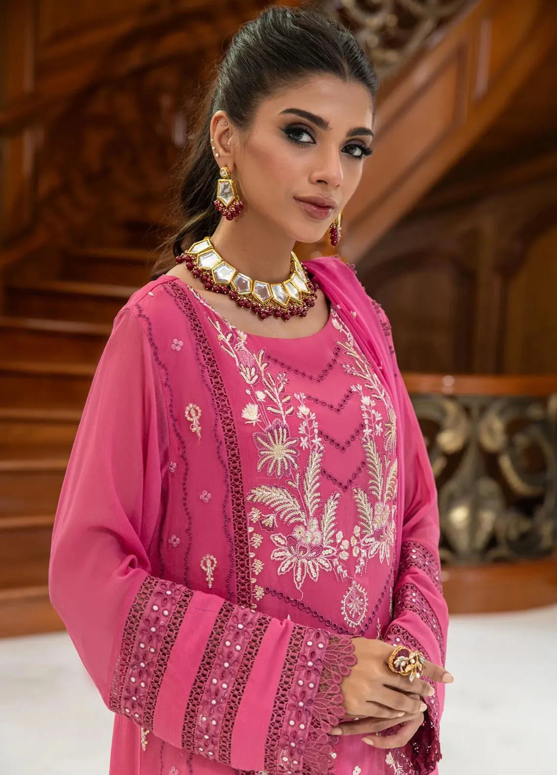 ?Embroidered Chiffon 3 Piece Suit