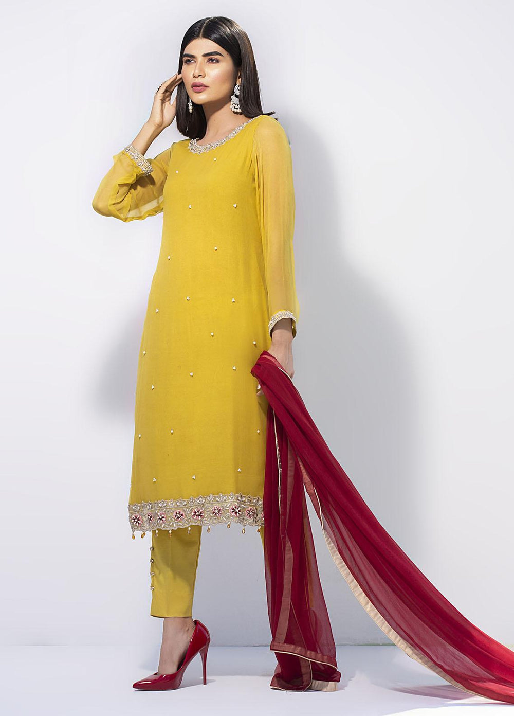 Aisha Fatema Luxury Pret Embroidered Chiffon 2 Piece Suit AESTHETIC YELLOW