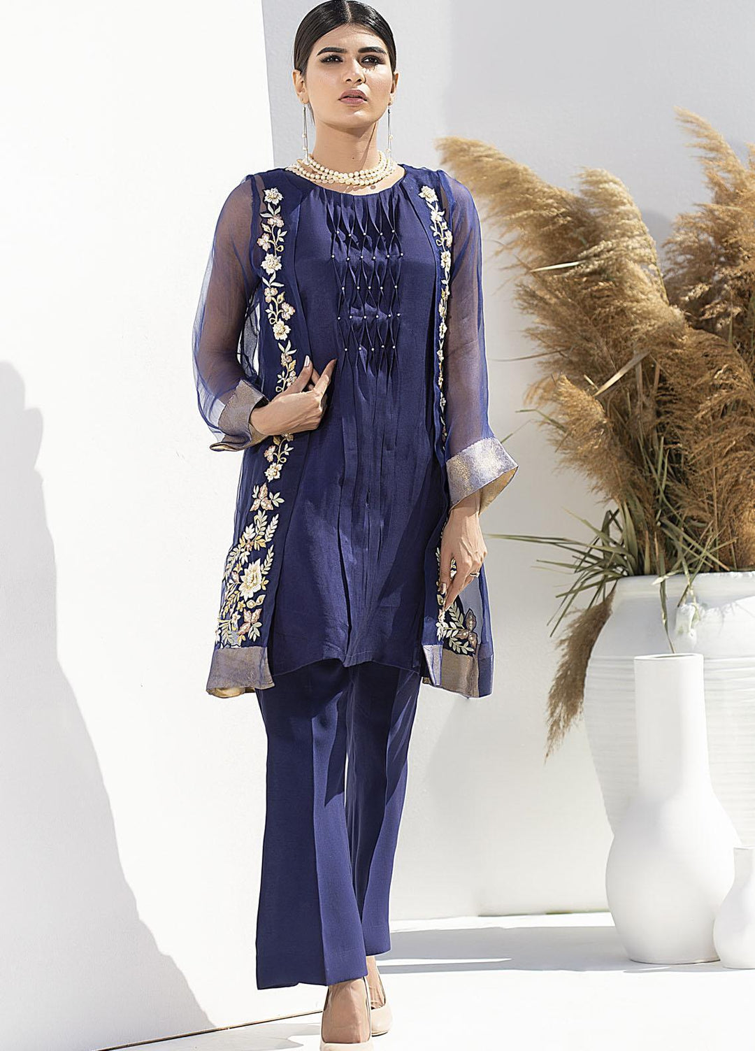 Aisha Fatema Luxury Pret Embroidered Organza 2 Piece Suit MIDNIGHT BLUE