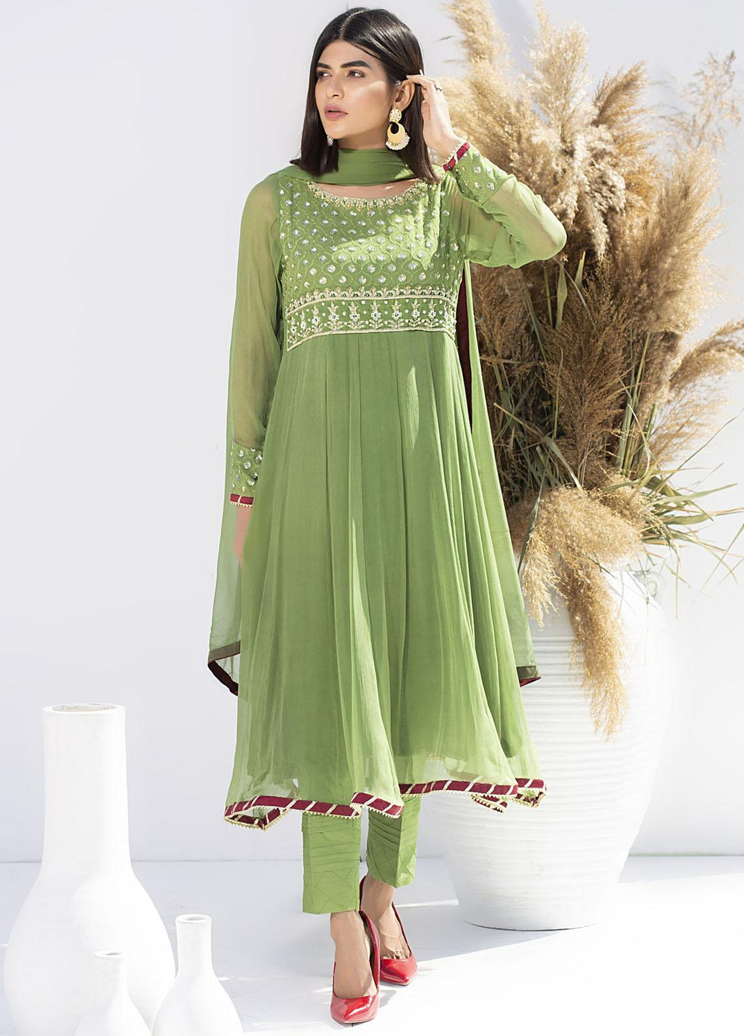 Aisha Fatema Luxury Pret Embroidered Chiffon 2 Piece Suit PEAR GREEN