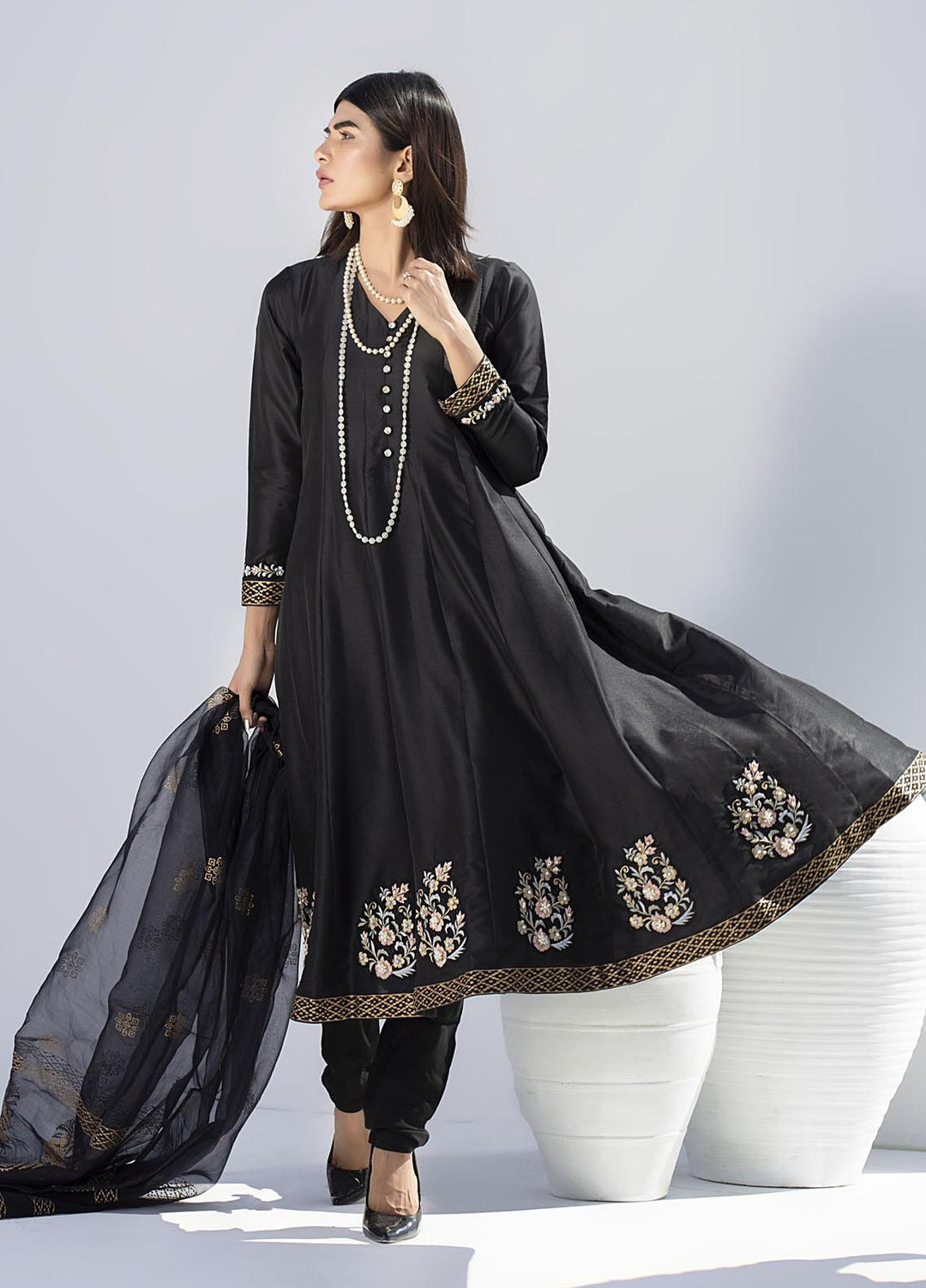 Aisha Fatema Luxury Pret Embroidered Silk 2 Piece Suit SLEEK BLACK