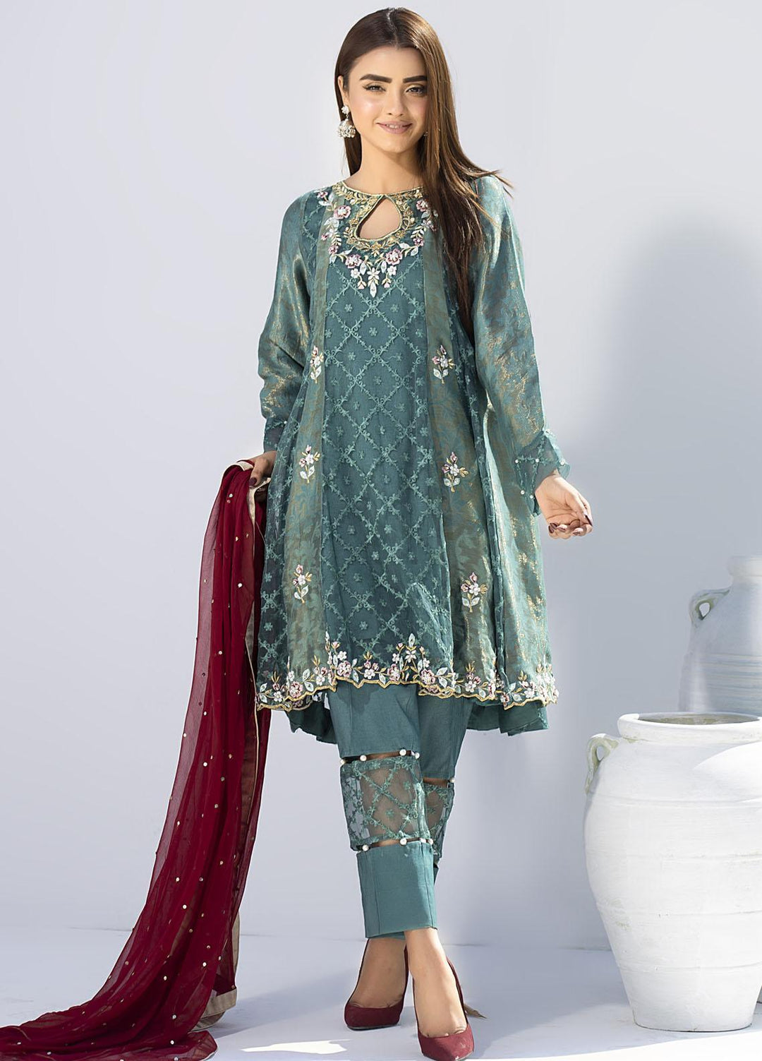 Aisha Fatema Luxury Pret Embroidered Organza 2 Piece Suit AQUA WRAP