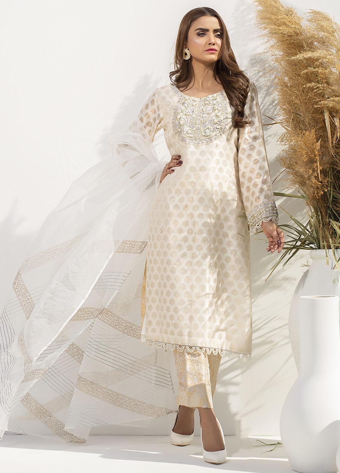 Straight Masuri shirt with a wonderful gold and silver colored round embroidery on the neckline detailed with pearls and sequins embellishments. Unique pearls finishing on the sleeves and bottom highlights the dress