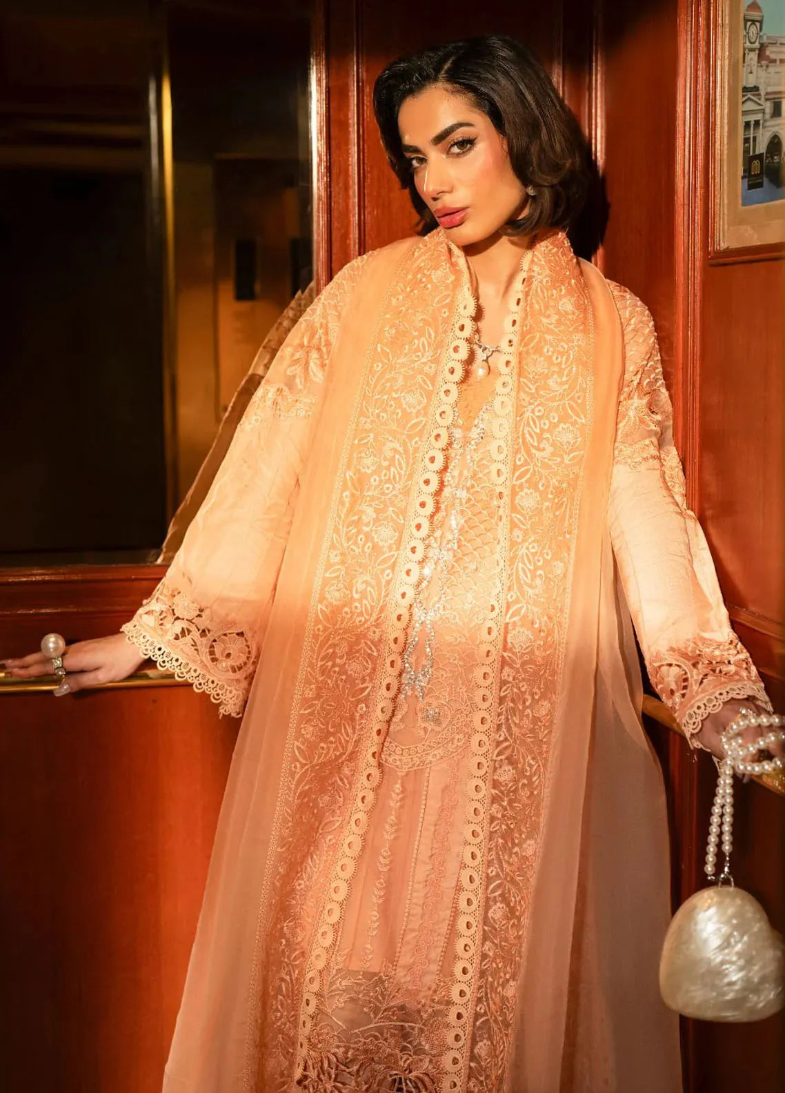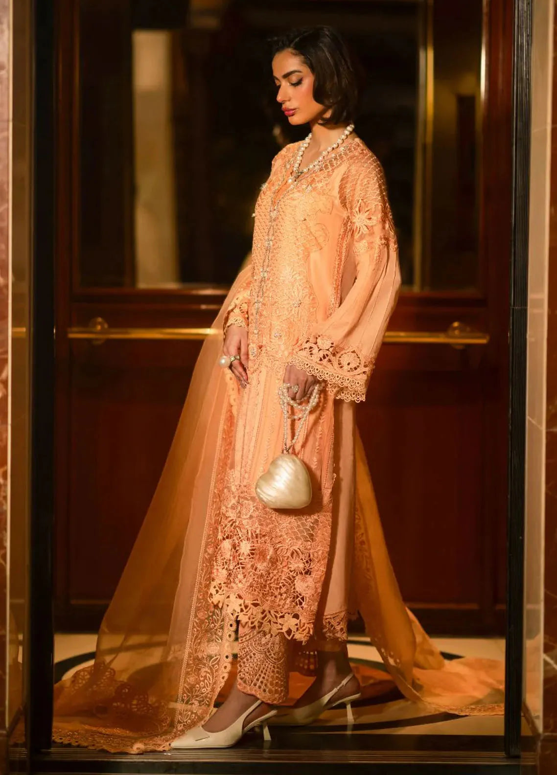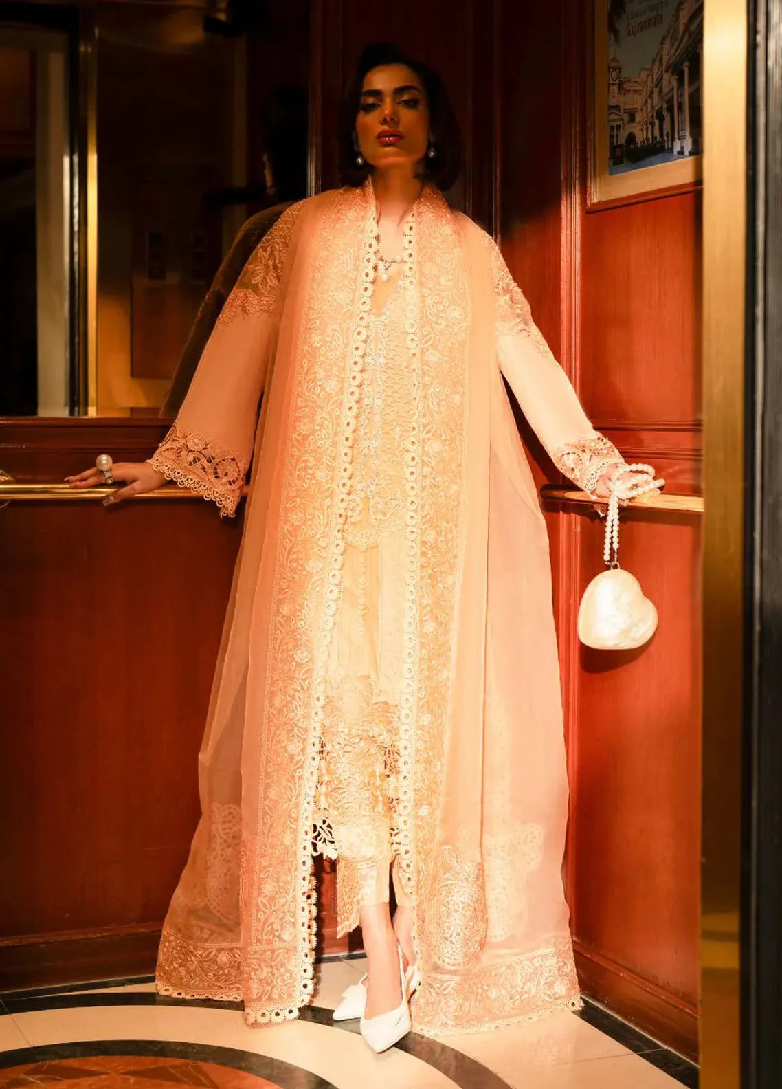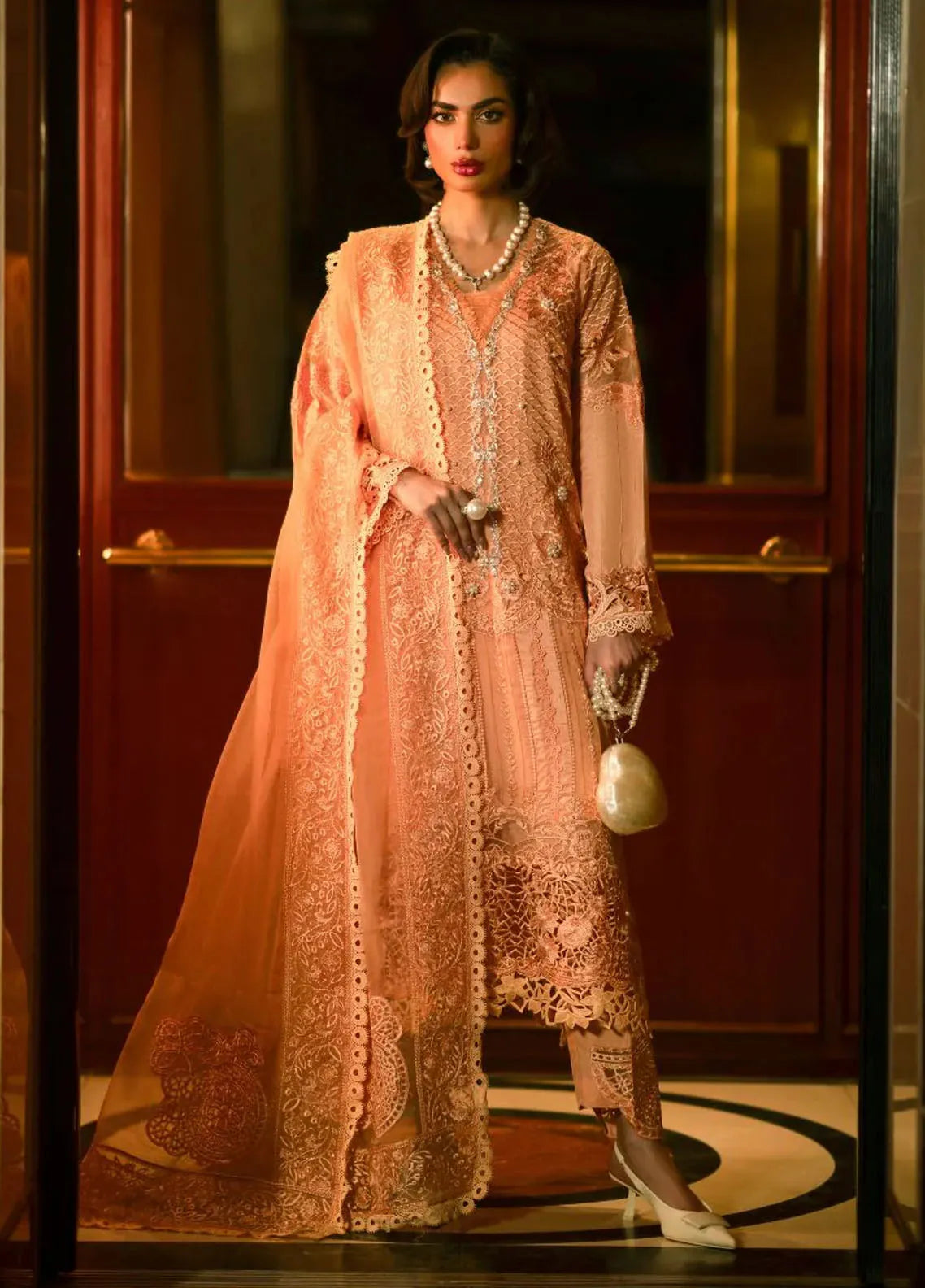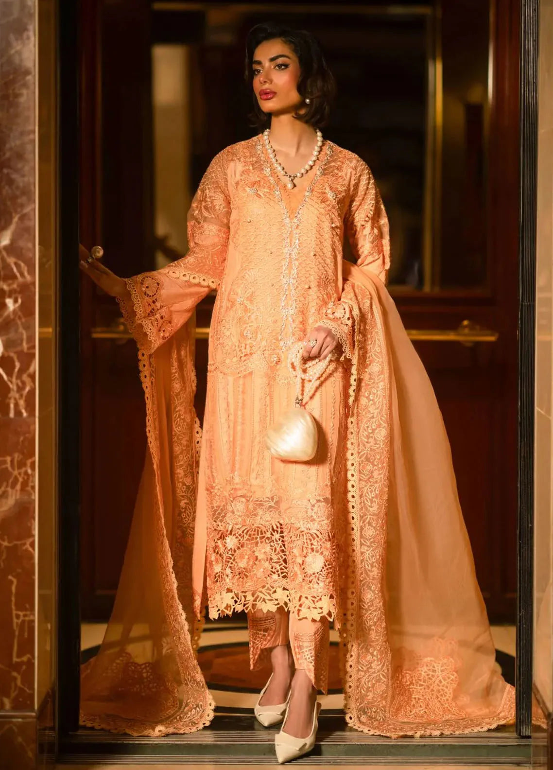 • Presenting Our Stunning Elle Outfit From The Cutwork Edit 2024 Collection. This Elegant Peach Shirt Showcases Intricate Cutwork Embroidery Along The Upper Section Adorned With Exquisite Organza Lace And Silk Appliques All Finished With A Refined Cutwork Border. Its Beautifully Paired With An Embroidered Organza Dupatta And Straight Pants Featuring Delicate Applique Motifs.