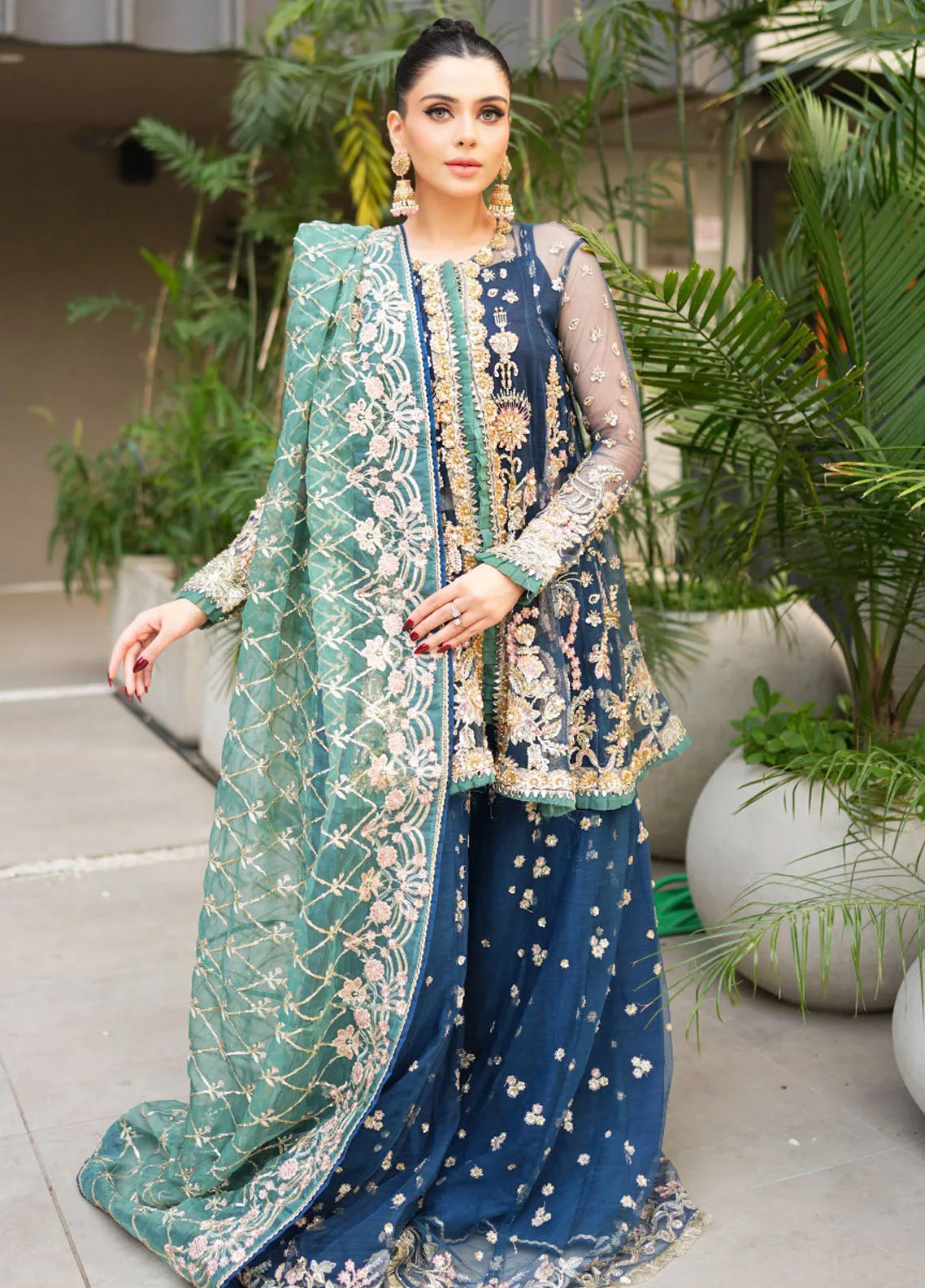 Inayat By Ajr Embroidered Net Suit Unstitched 3 Piece AJR24IWD-06 Regal Sapphire - Formal Collection