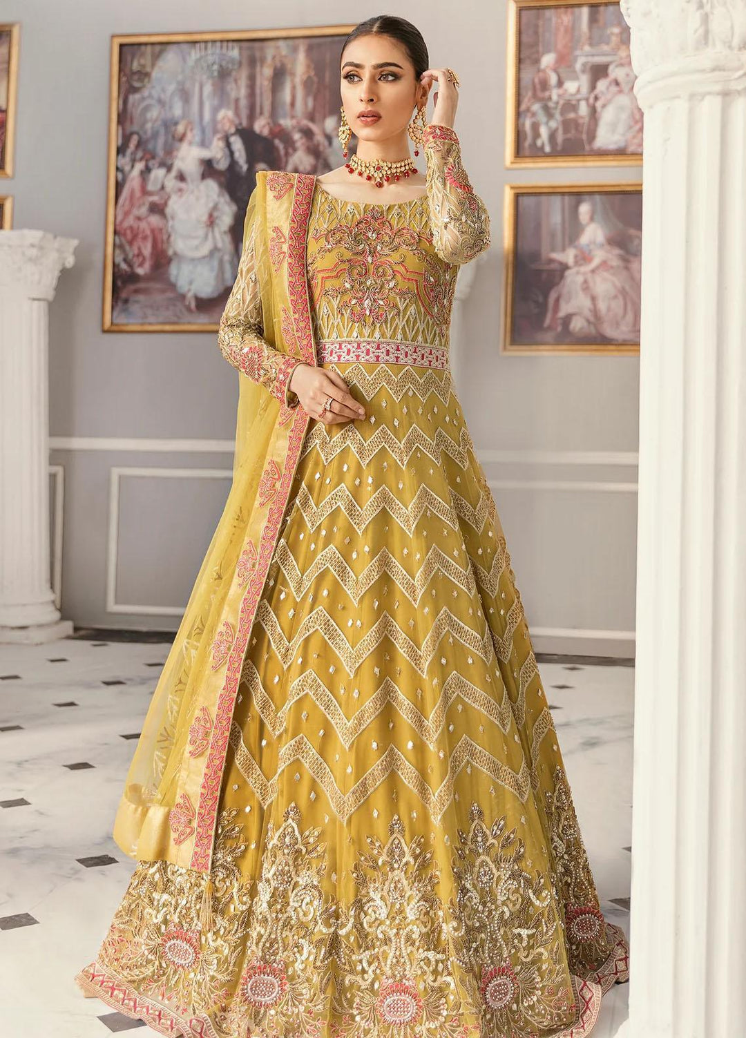 Akbar Aslam Embroidered Net Suits Unstitched 2 Piece AA22F CITRINE - Luxury Formals Collection
