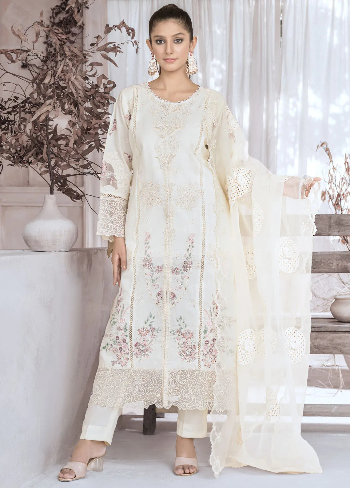 Embroidered Pret Cotton 3 Piece Suit