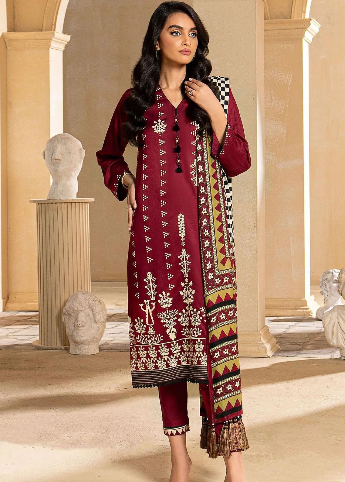 Al Karam Printed Viscose Suits Unstitched 3 Piece AK22W FW-28.1-22-Red - Winter Collection