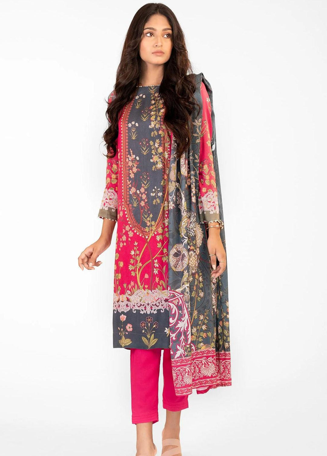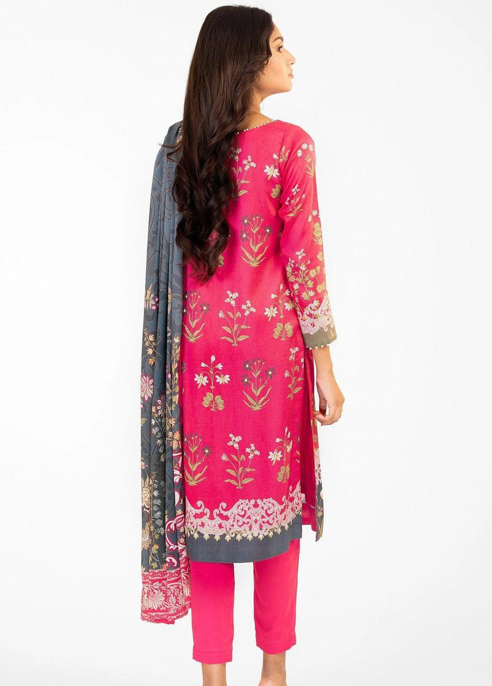 Al Karam Printed Marina Suits Unstitched 3 Piece AK22W FW-35.1-22-Hot Pink - Winter Collection