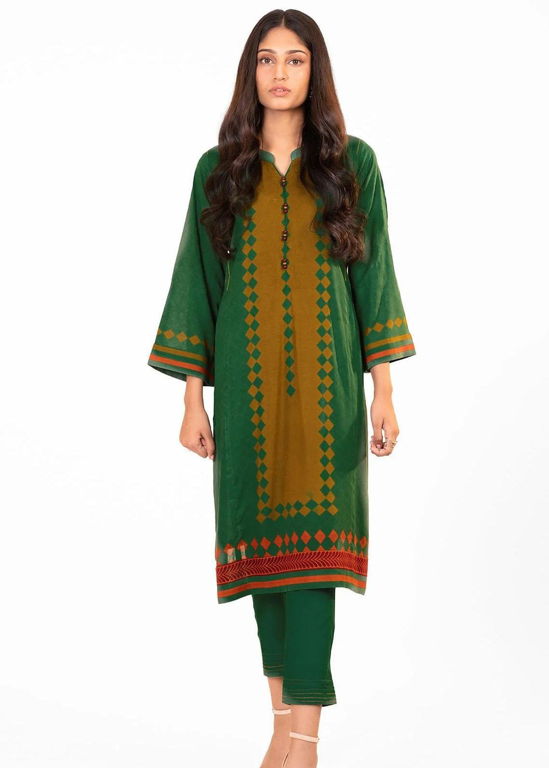 Al Karam Printed Viscose Suits Unstitched 2 Piece AK22FW FW-40.1-22-Green - Festive Collection