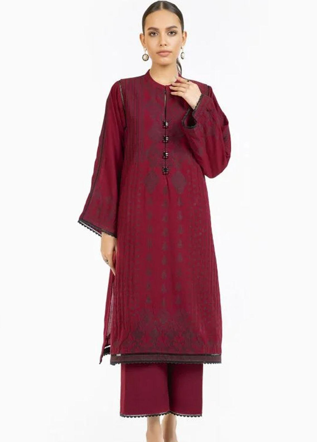 Al Karam Embroidered Karandi Suits Unstitched 3 Piece AK22FW FW-12.1-22-Maroon - Winter Collection