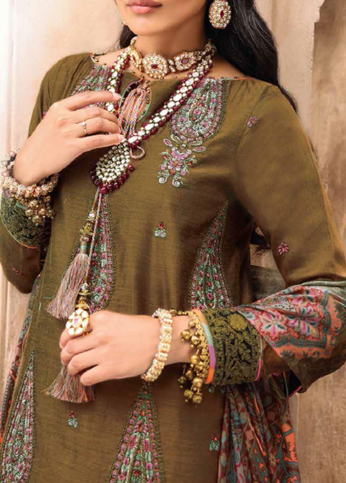Al Karam Embroidered Cotton Net Suits Unstitched 3 Piece AK21FW FC-W-25I-21-3-Golden Brown - Winter Collection