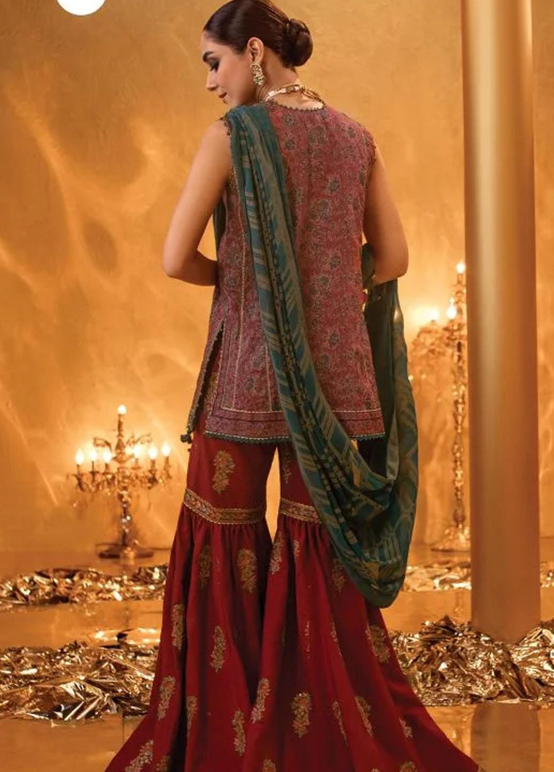 Al Karam Embroidered Lawn Suits Unstitched 2 Piece AK22FW FC-W-18G-22-3-Dark Red - Festive Collection