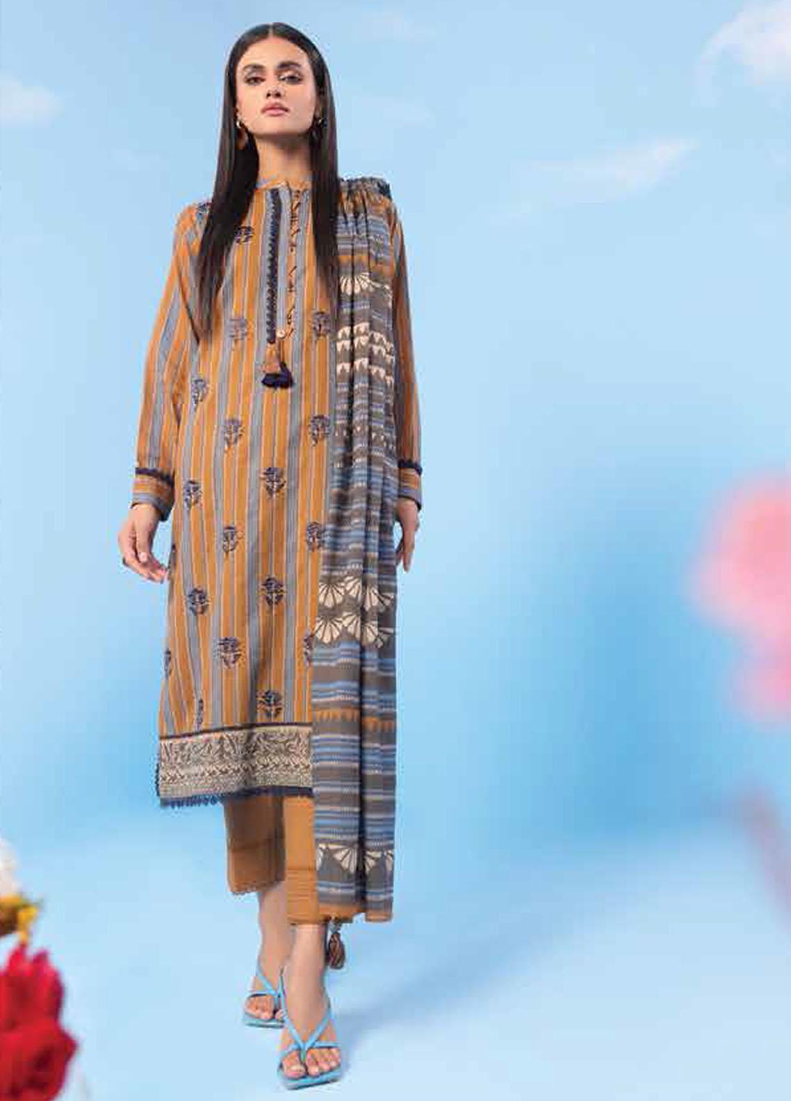 Al Karam EmbroideRed Lawn Suits Unstitched 3 Piece AK23SSL SS-33-23-Brown - Summer Collection